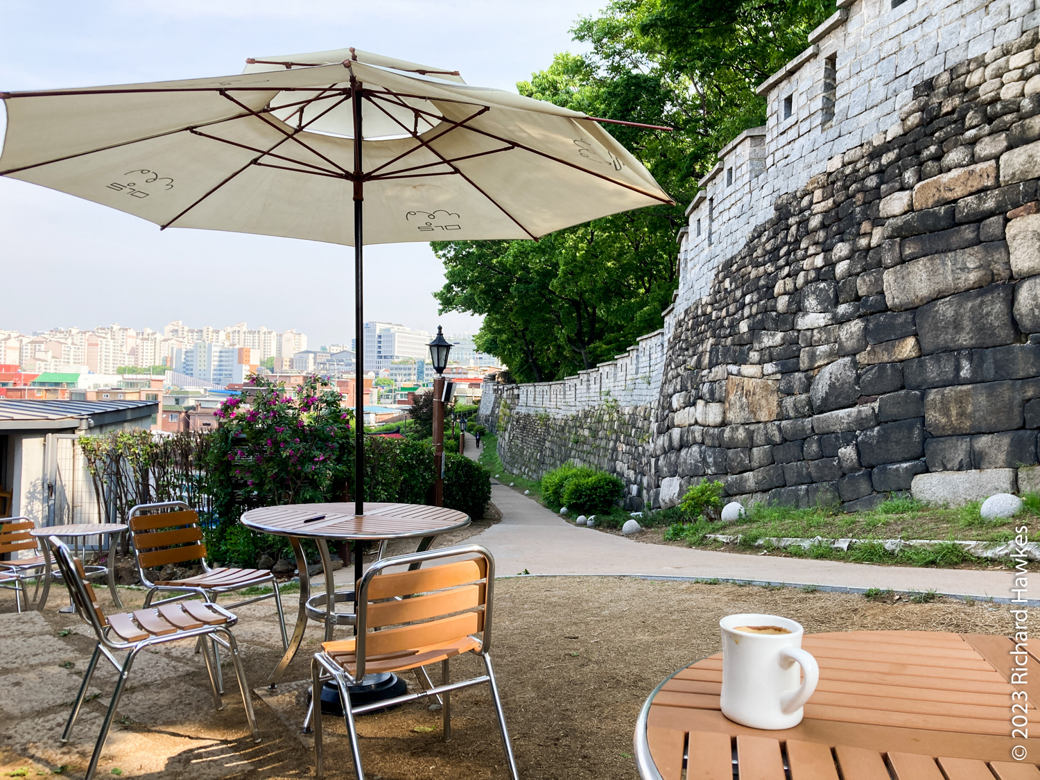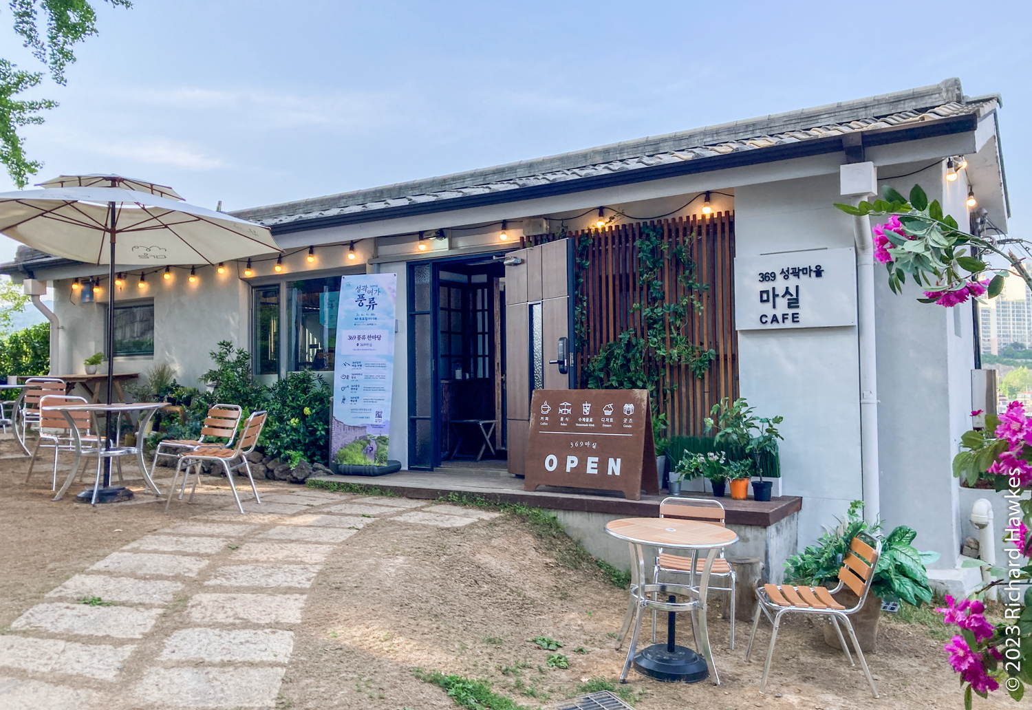 369 Masil Cafe (369마실) lies along a section of the Seoul City Fortress Wall. It’s an old house, and accessible either from a steep set of steps from the town of Samseon-dong (삼선동), or by walking the Seoul City Fortress Wall Trail.