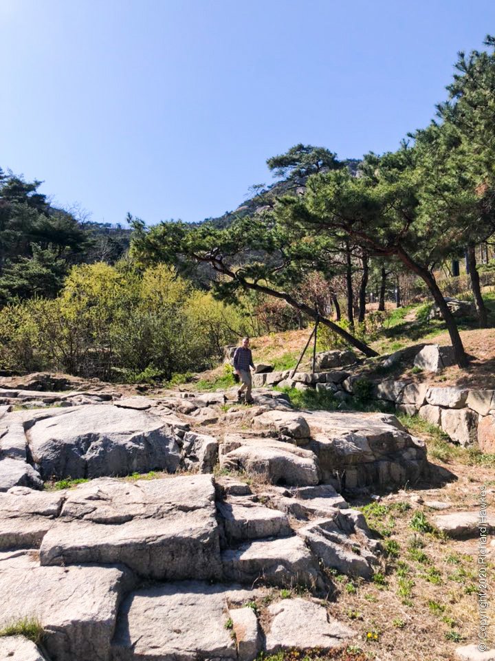 Suseongdong Valley is a smallish, hillside/valley park running from the east side of Inwangsan to a town area called Seochon. There are stream areas (dry now) and view points into the main city, but mainly lots of green and blossom.
