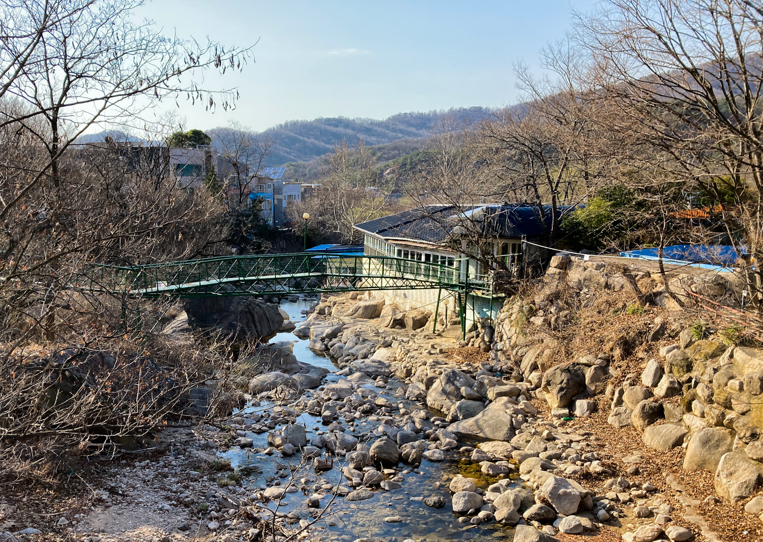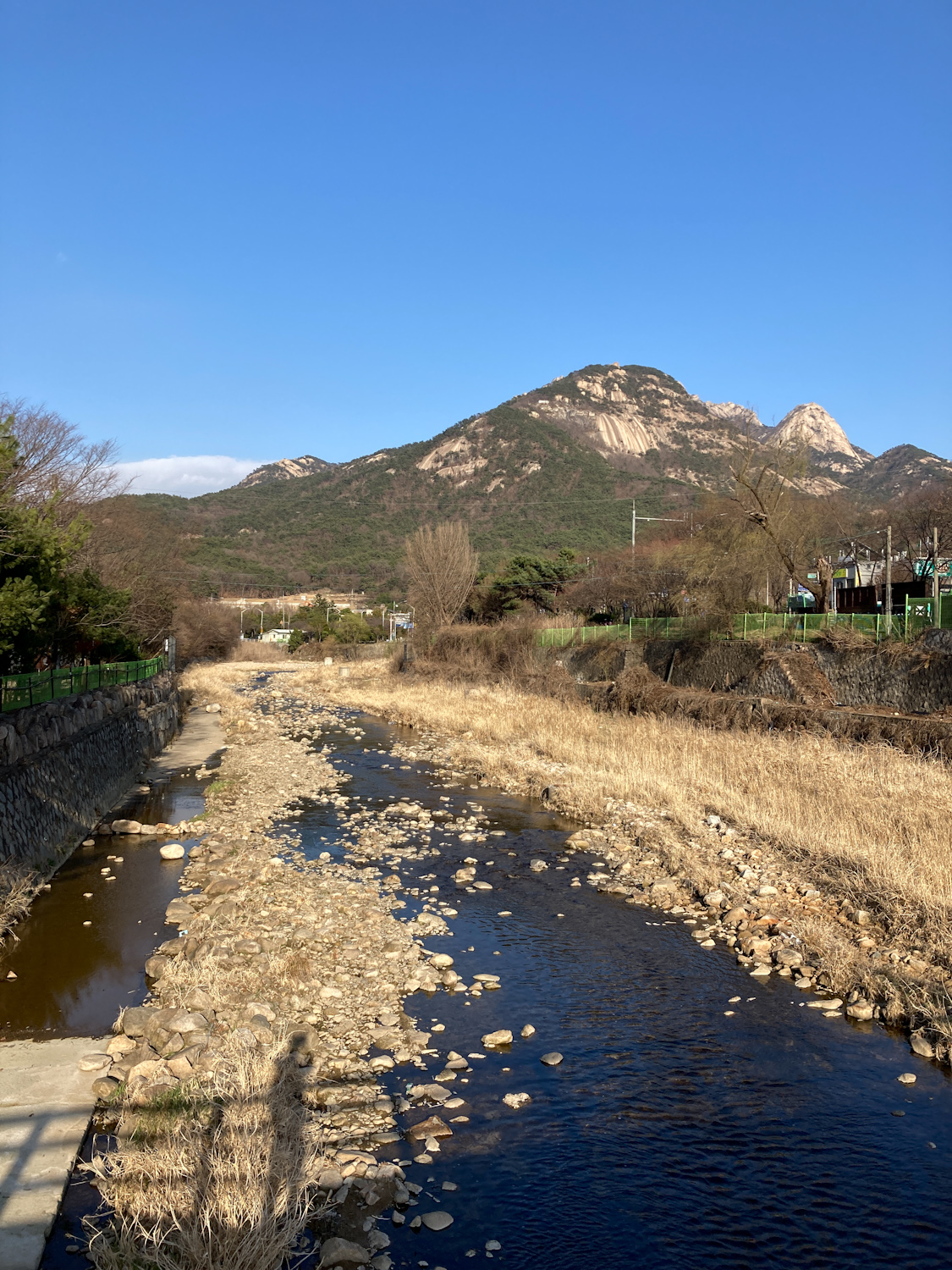 I got to the coffee shop called Bukhansan Play (북한산플레이) and sat in the garden between near the stream and with a view of the mountain.