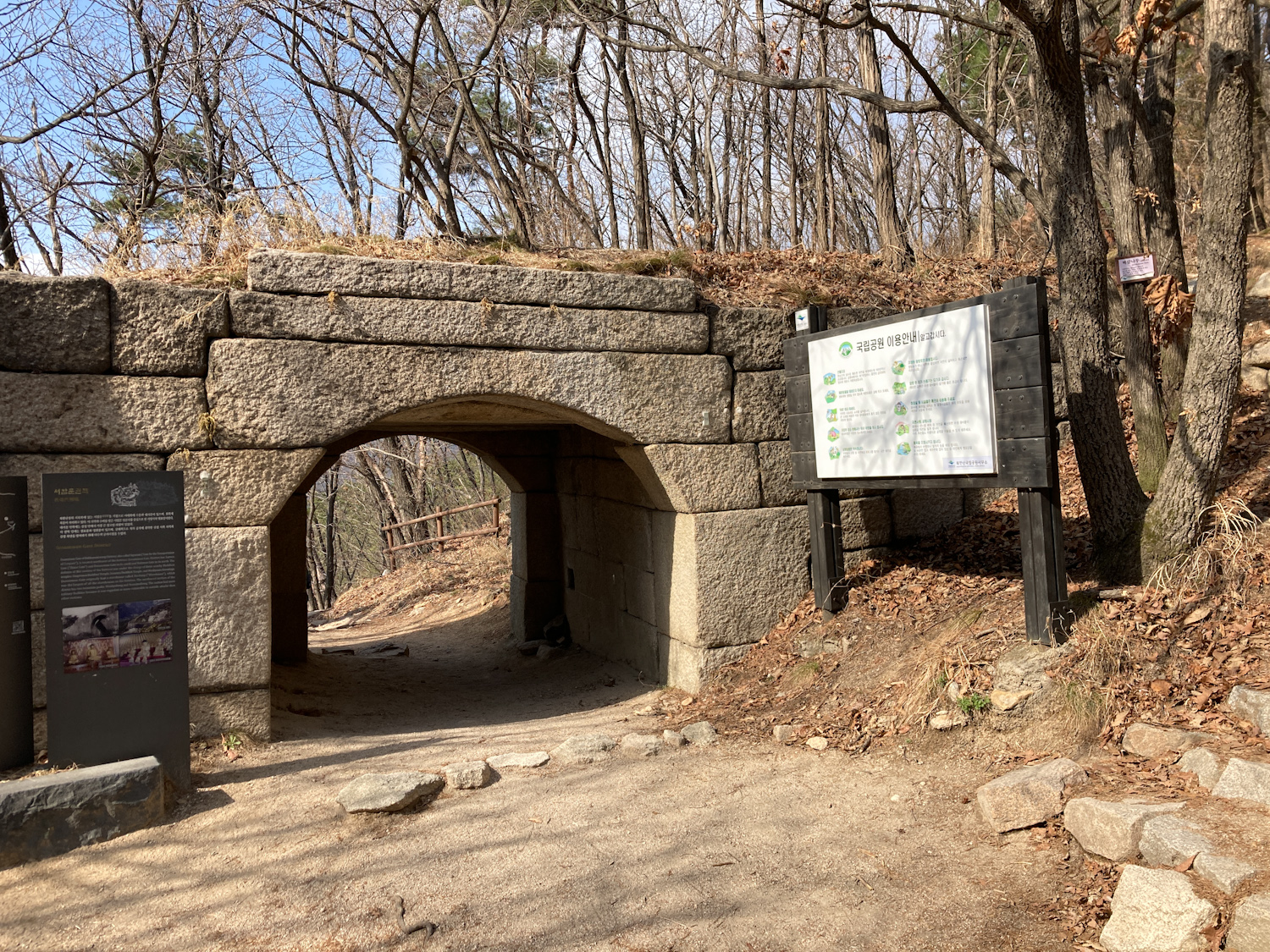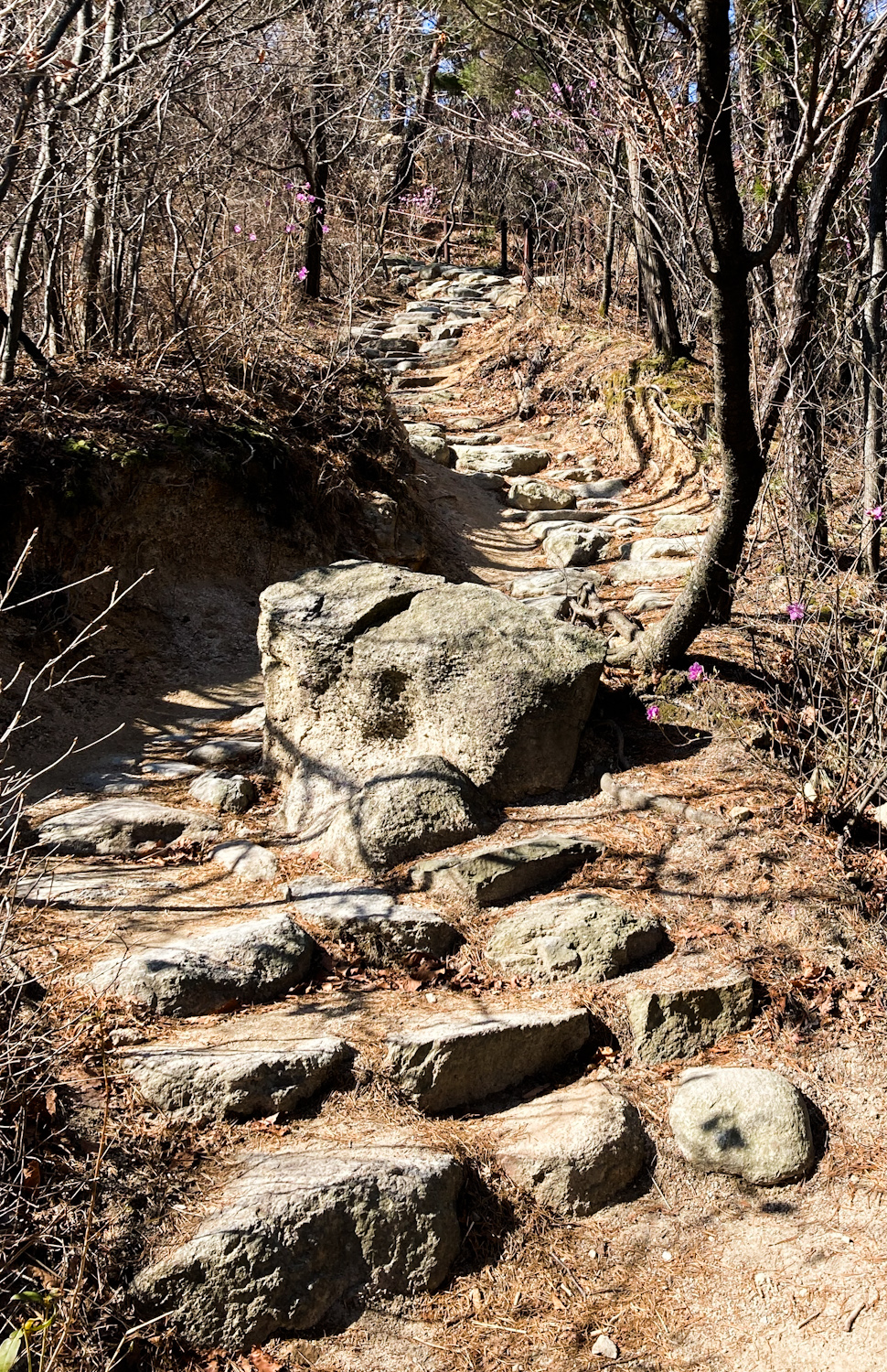 I left Bukhansan Ui Station (북한산 으이역) Gate 2 on the Uisinseol Line and headed west along a road and river before getting to the entrance to the park. The trail was nice and offered some early views of the peaks ahead.