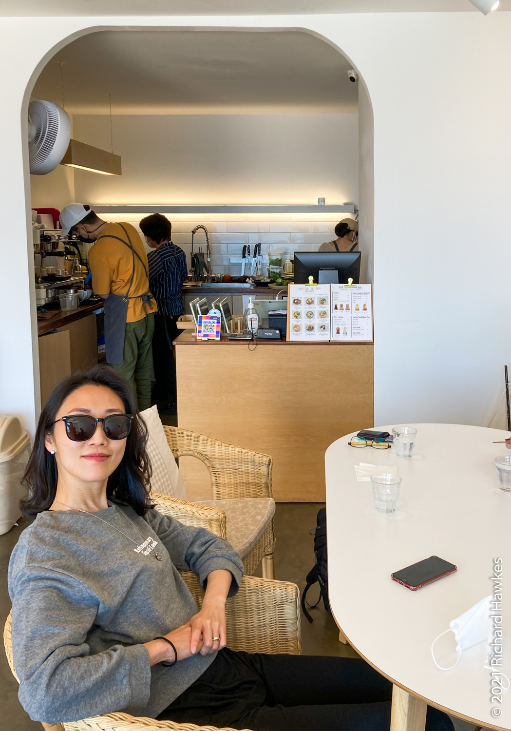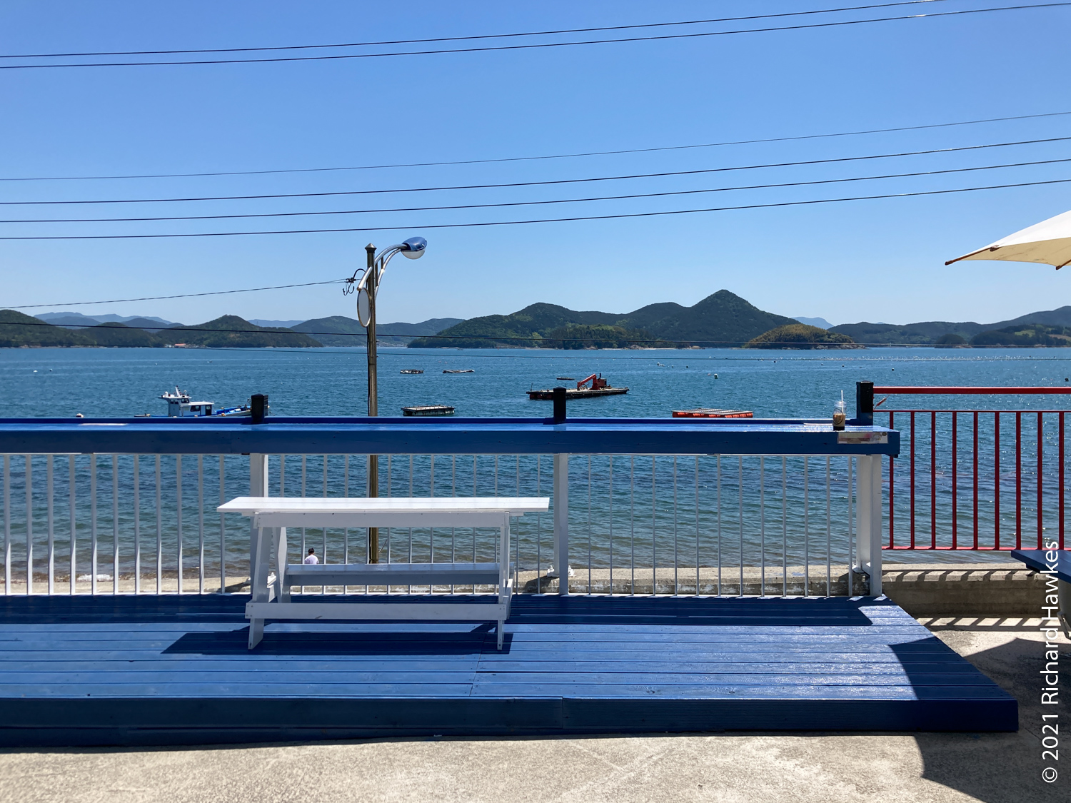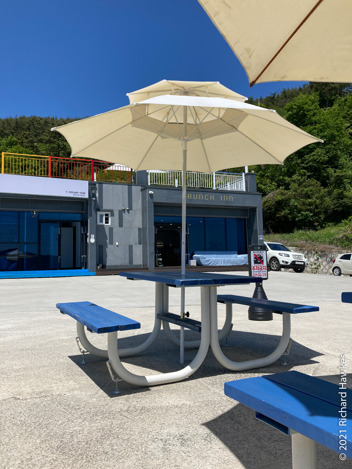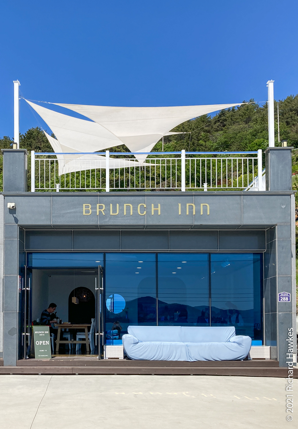 We drove to Brunch Inn (브런치인) for a very nice breakfast. It’s a cafe near the marina on the east side of Tongyeong (I seem to remember having passed this on the scooter the last time I was here). The weather was scorching and there wasn’t one cloud in the sky. I think passing the yachts in the car planted the seed for taking a sailing trip…