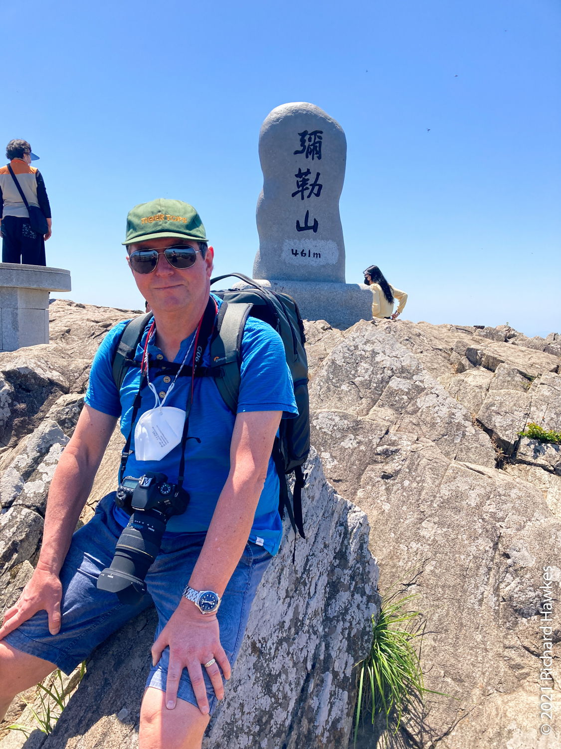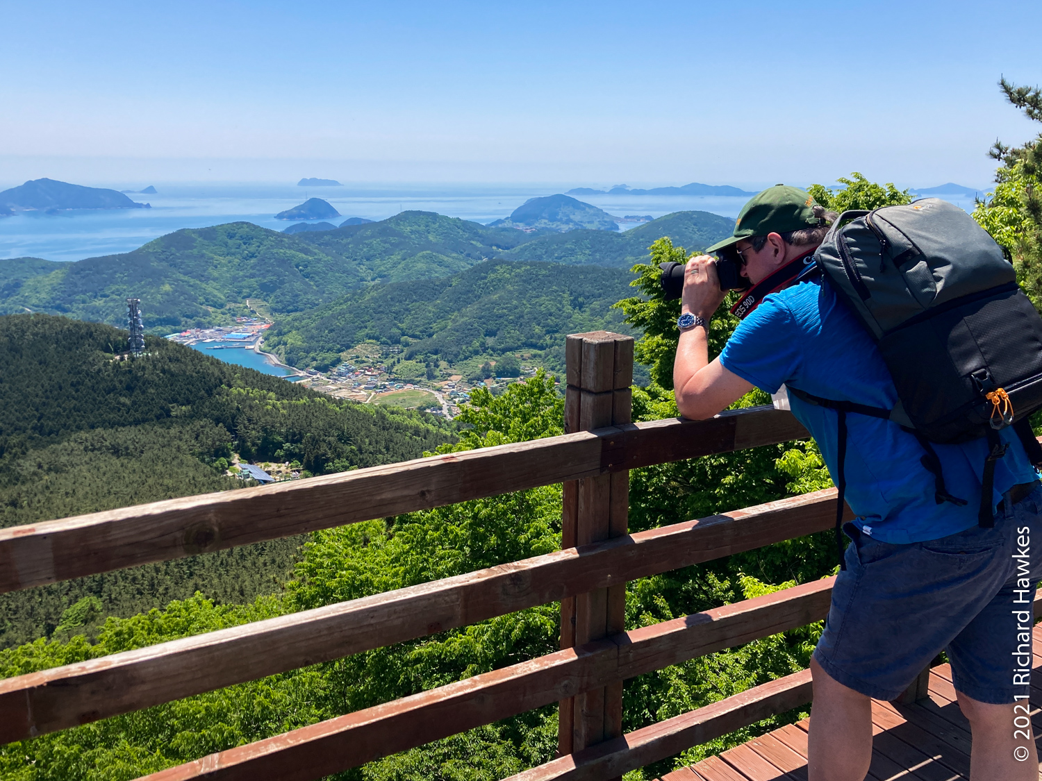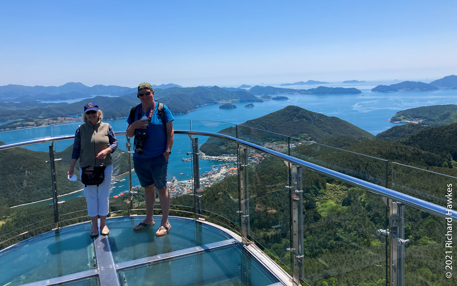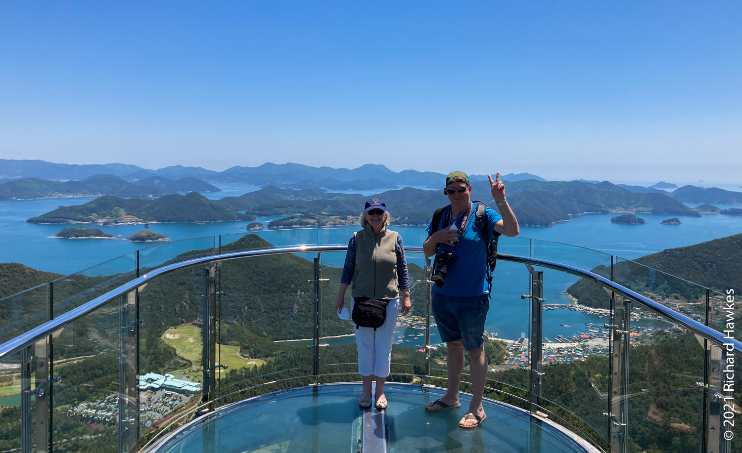 After breakfast, we went up our second cable car in as many days! This is the Mireuksan Tongyeong Cable Car (which I’d also been to the previous year). It was much less windy than yesterday and the views stunning as ever. At the top, we wondered around, then Kevin and I walked the many steps to the peak. That took about 20 or 30 minutes. The peak was nice with panoramic views (and lots of people trying to get a picture of the summit stone).