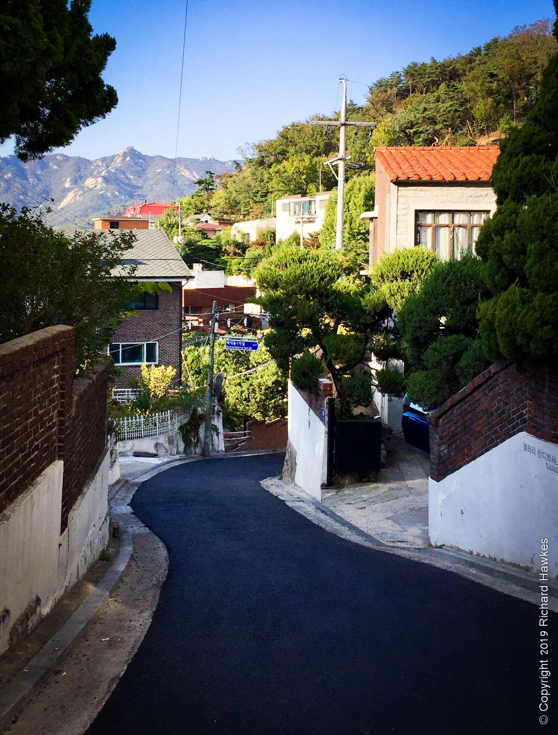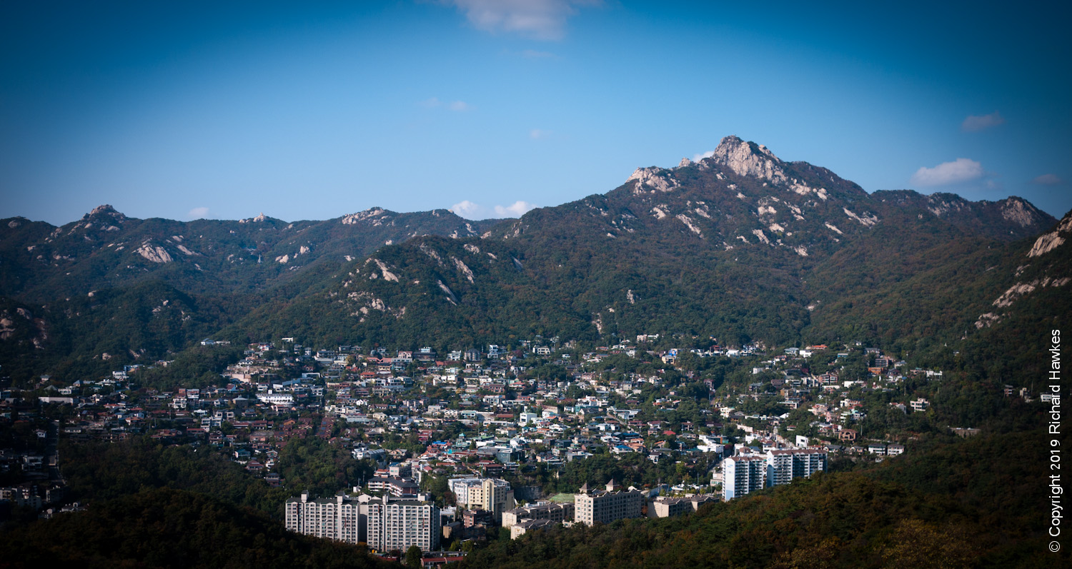 The Bugak Skyway (북악스카이웨이길) is a road and trail that runs mainly east-west, east and north of Bugaksan. It’s popular with cyclists and casual walkers.