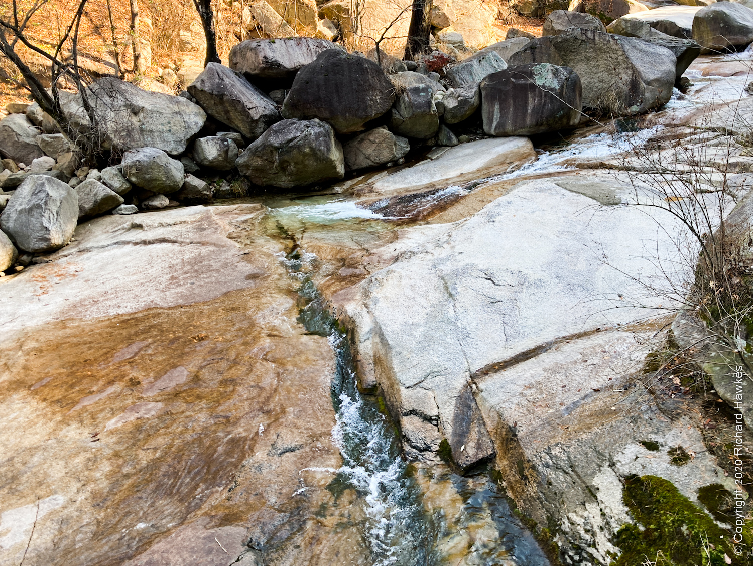 I started at the fortress entrance to the park (Bukhansanseong) and walked east along Bukhansancheon stream (북한산천). There was a nice amount of water flowing and there was evidence of ice from before, but not right at that moment. There were some interesting rocks along the trail before I got to the first part of ‘the up’ as I’m going to call it from now…