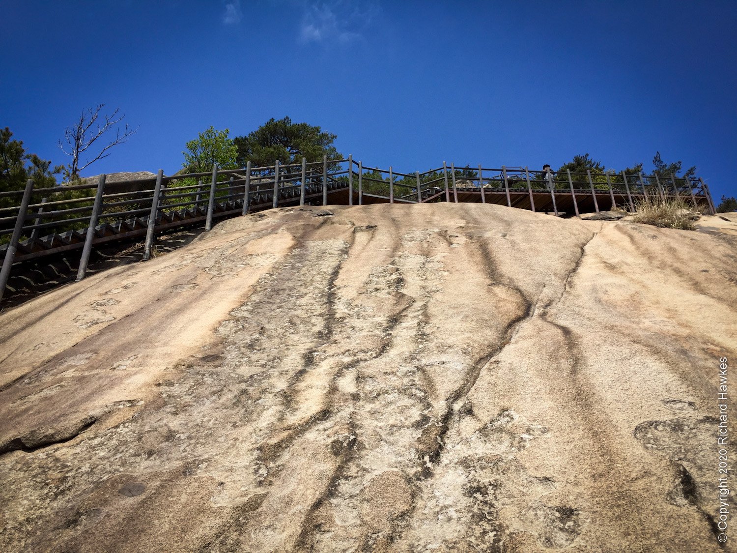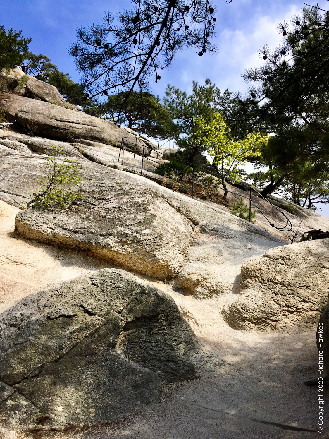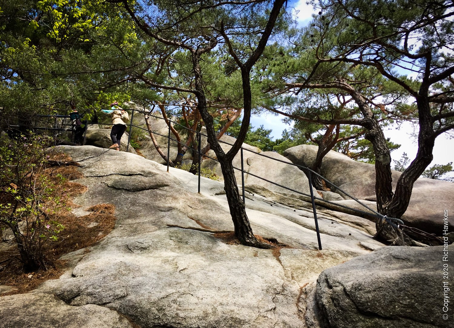 After my break, time to go up. It was steep and it’s lined with steel cables with steps every now and then. I can’t imagine having to have gone up without these, but I guess people did all the time in the past. It was a fairly simple hike, not exhausting because I kept stopping to look around! Great rocks and great views.