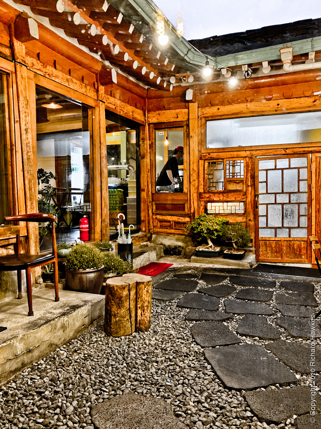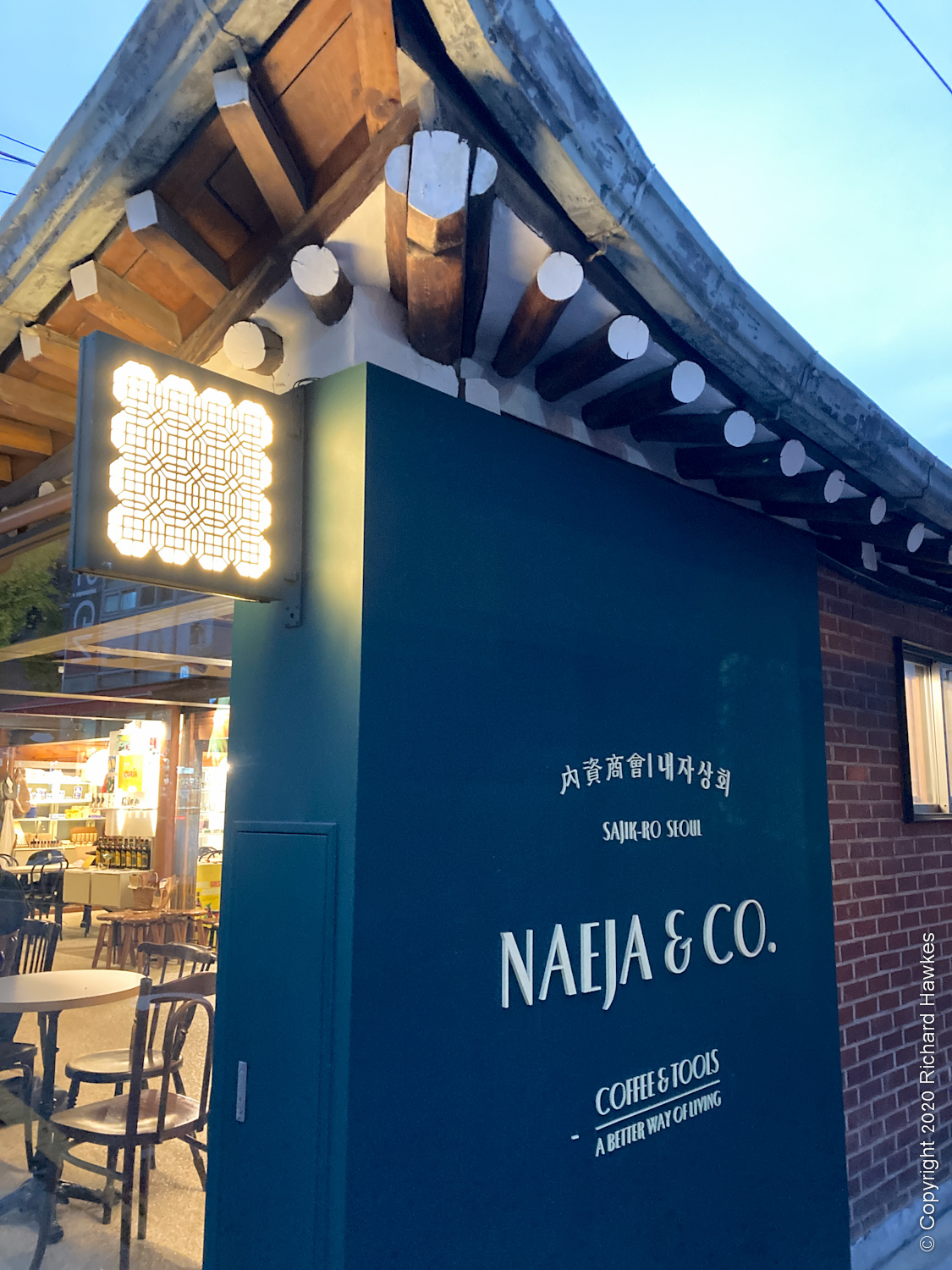 It wouldn’t open for a bit, so went I to a groovy little coffee shop next door, also in a refurbished building: Naeja and Co (내자상회). The coffee was good and the atmosphere pleasant. There were also some kitchen items on sale and a few other knick-knacks. The building itself was mainly just the walls and roof and one whole wall on the street side had been completely replaced with a window.