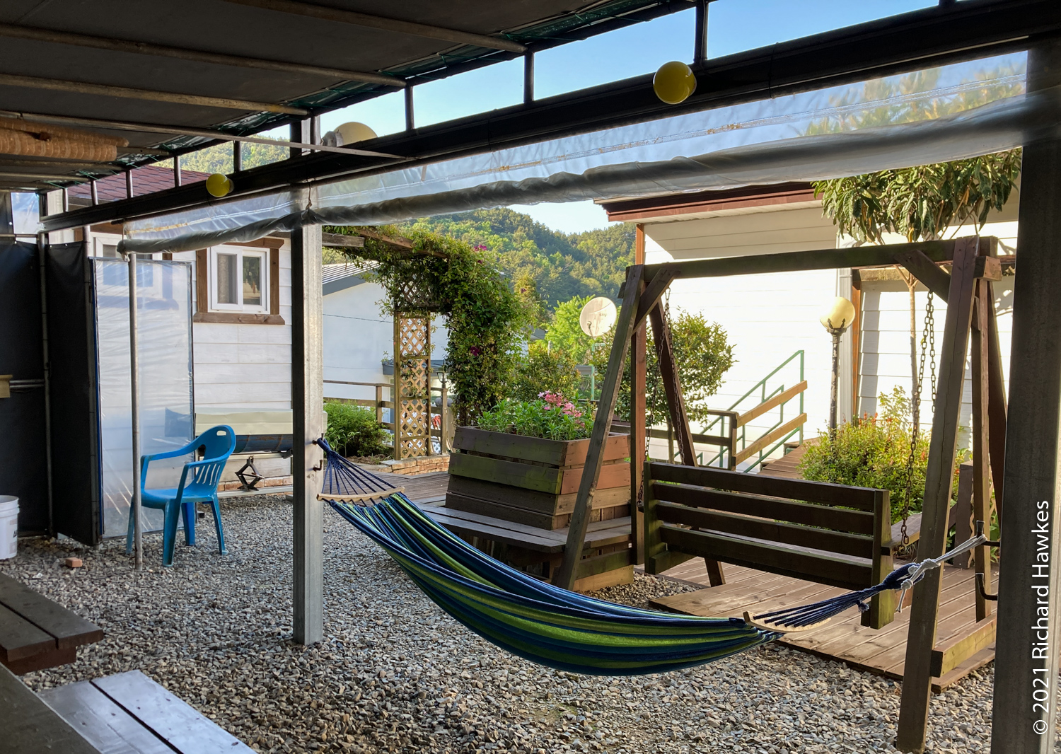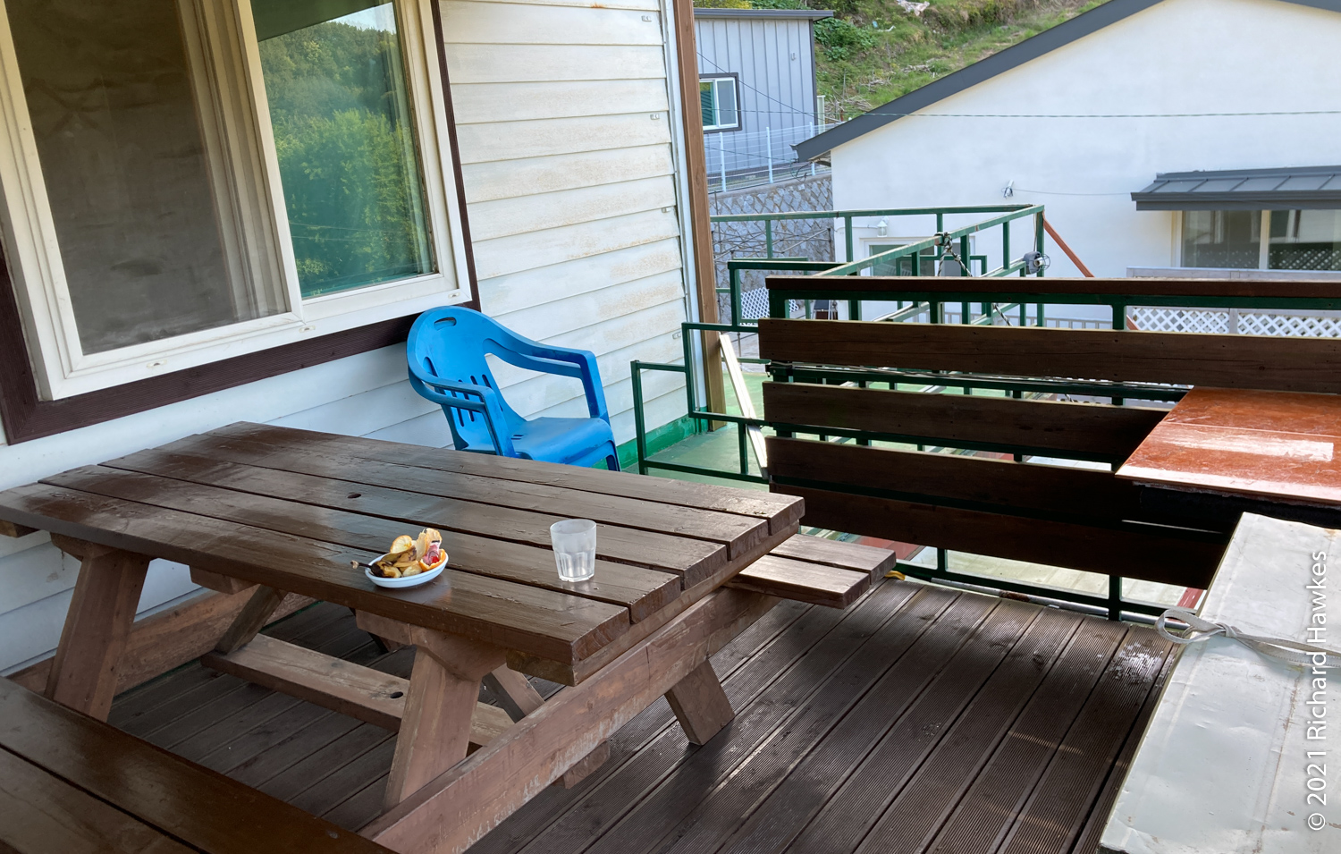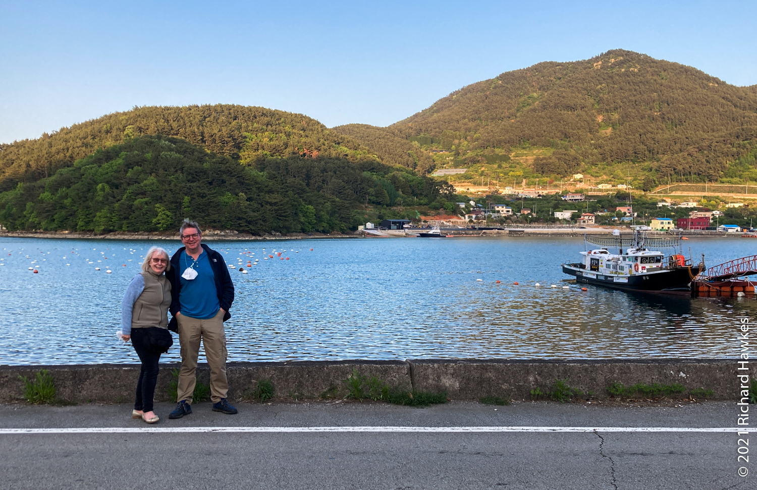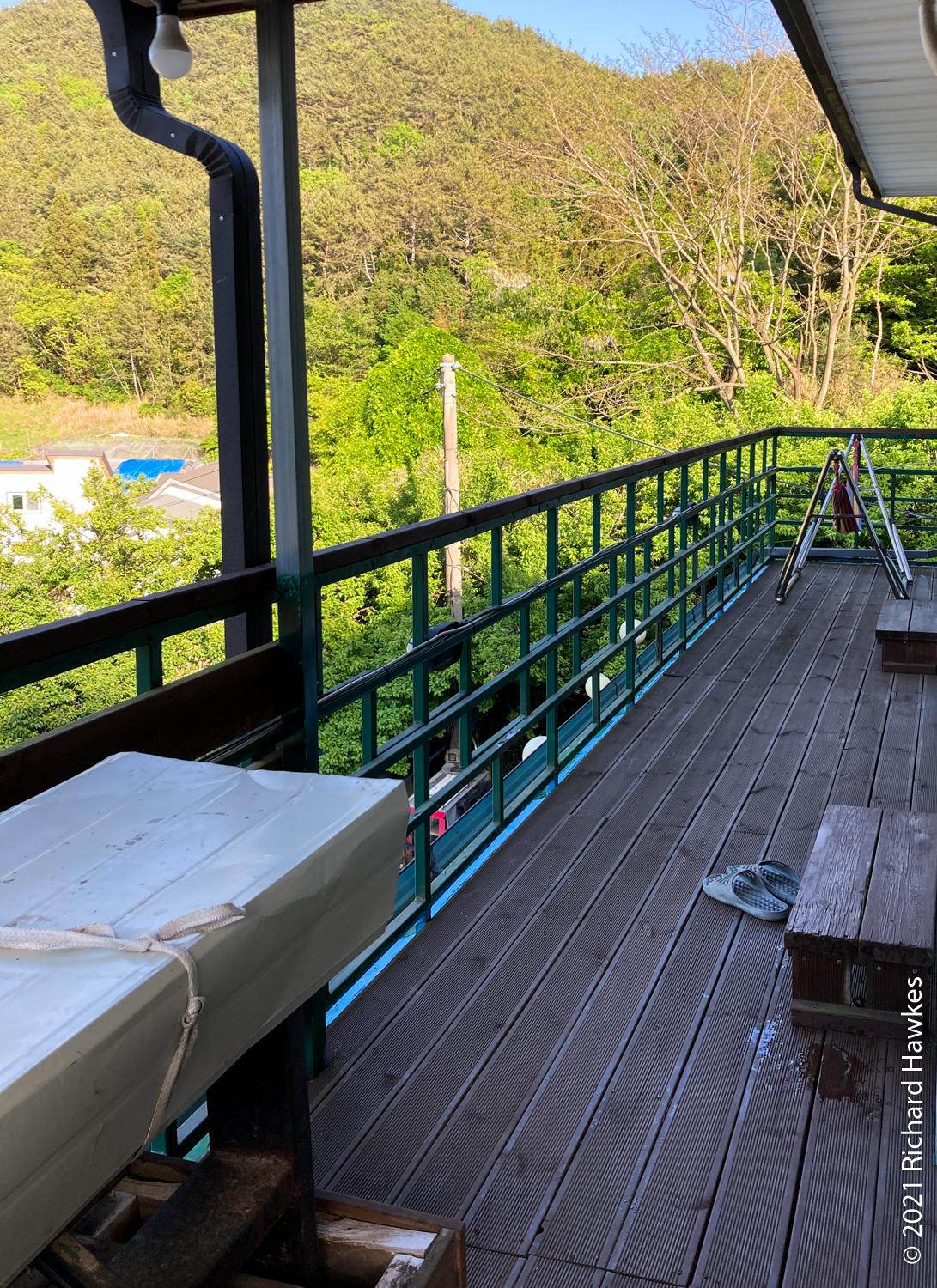 Next was the drive to Tongyeong. Our accommodation was on the western side on a peninsular, in the last house on a dead-end road in the hills. It was called Yeonji Pension (연지 펜션) and I found and booked it through Naver Maps. It was quite a lucky find as this was a holiday week. We had the second floor. There were two bedrooms, a large lounge / kitchen, and a veranda with a picnic table. The view from the balcony and lounge was lovely, looking all the way down to the sea at the end of the road. It was peaceful too; just the sounds of birds.
