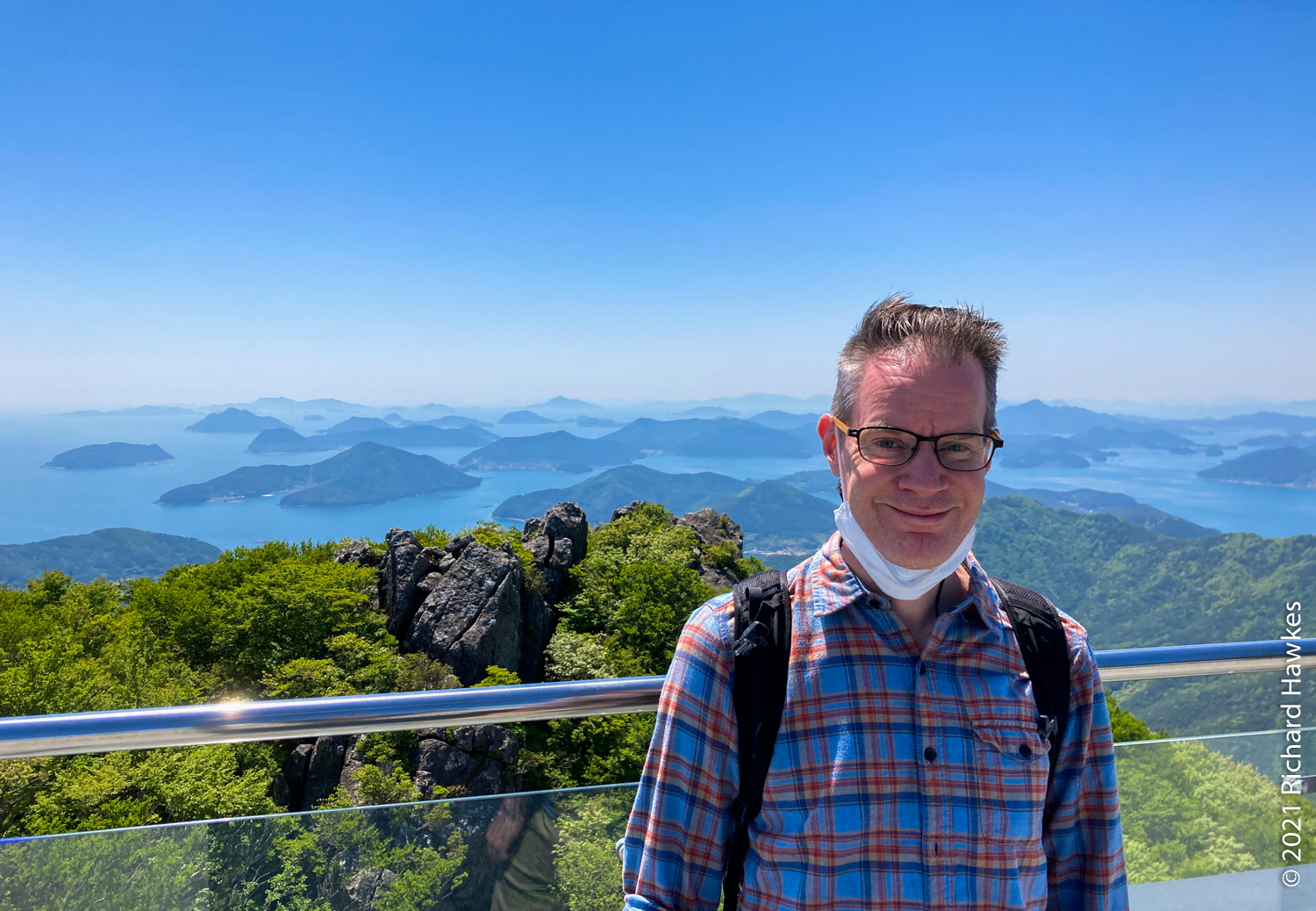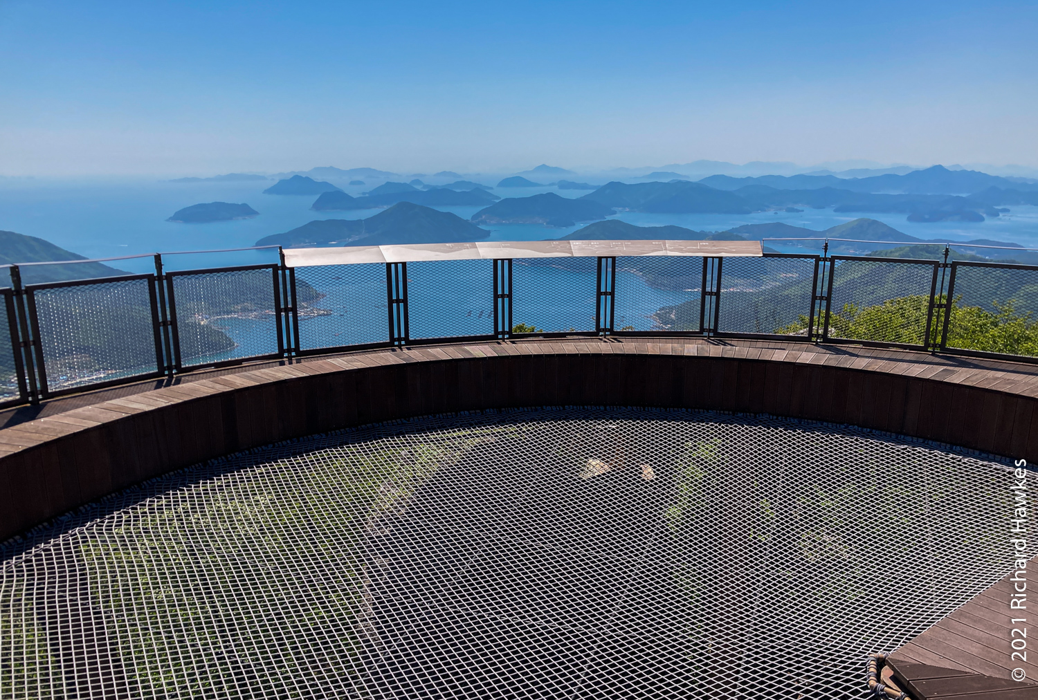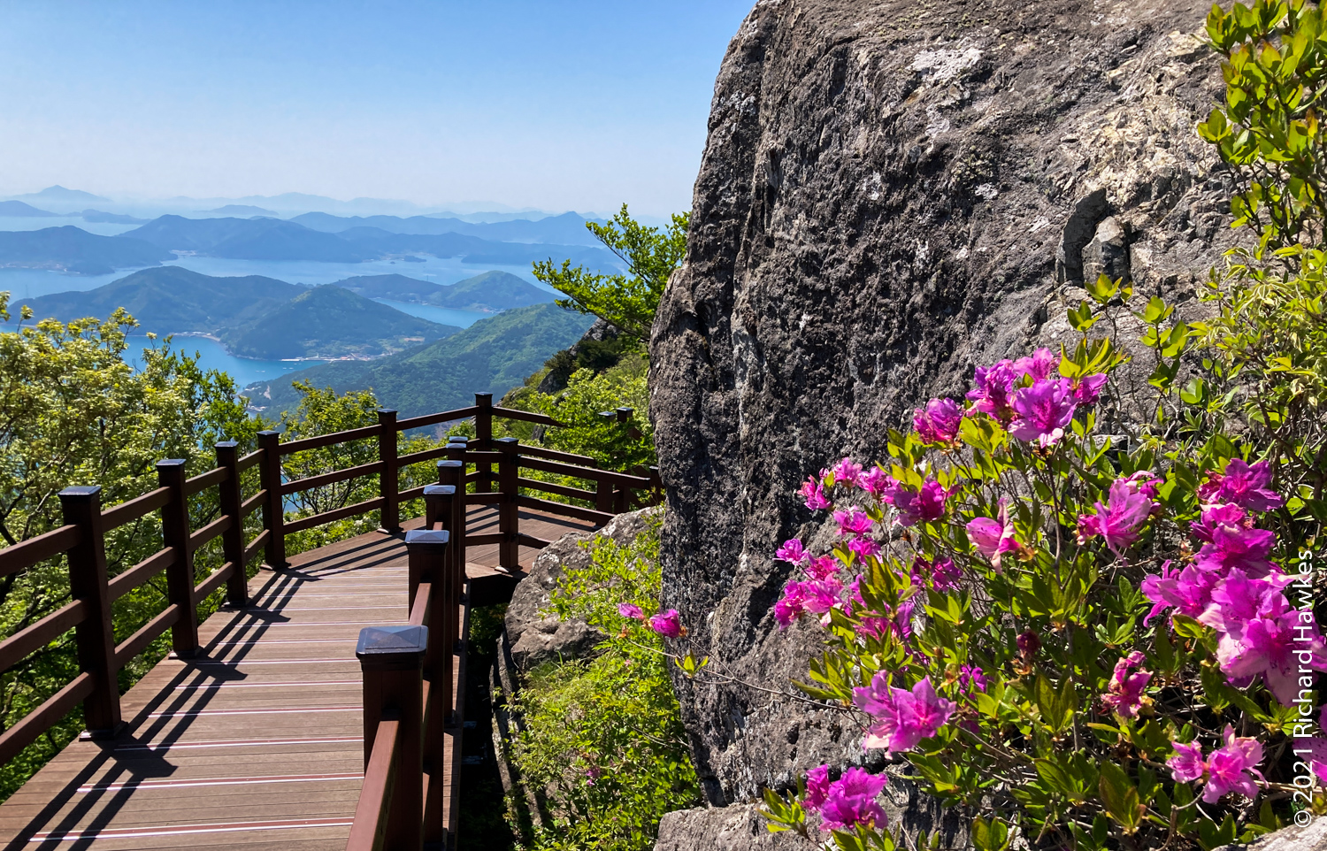 It was extremely windy at the top but the views were stunning. Romana and my parents were impressed with the views of the islands of Geoje and Tongyeong dotted out as far as the eye could see. I wandered up a short walkway to another platform on another piece of rock. There was an odd choice of a bouncy, climbing web contraption for kids to play on, on two levels. I can’t really explain what it was, so look at the photos! I walked on it and couldn’t really see the point of it, but the two kids on it seemed to be having fun. The views of the island in the sea, again, were amazing.