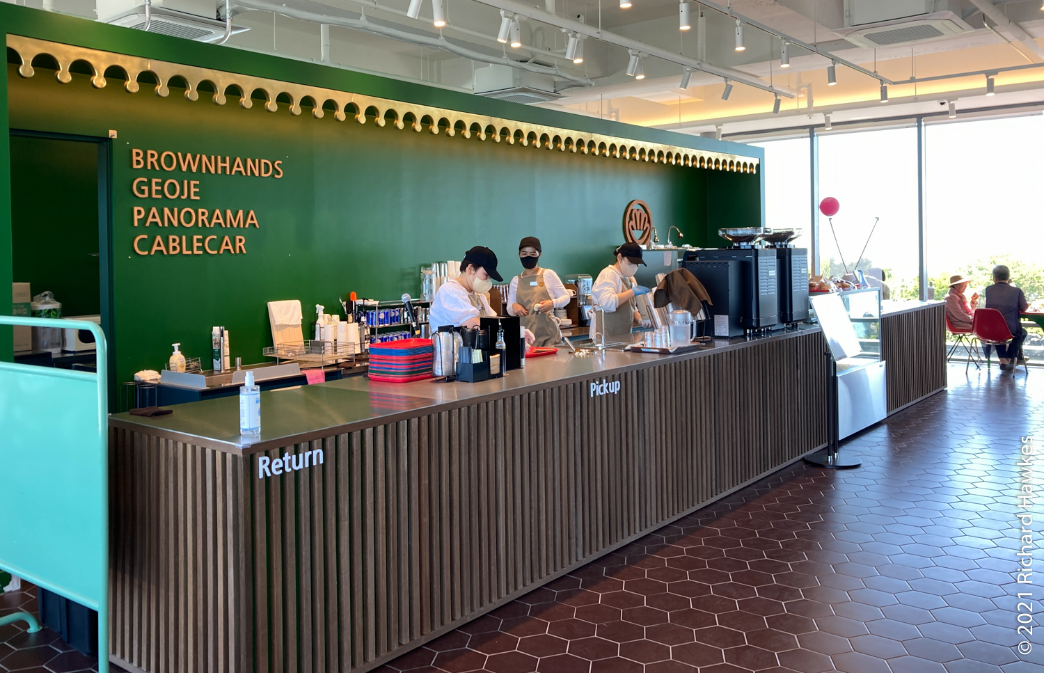 The coffee shop at the top was run by Brown Hands Coffee, a company I know from a trip to Busan in December last year. Great views from the tables, though we didn’t stay for a drink.