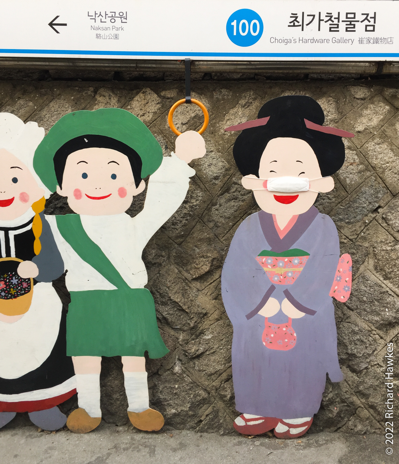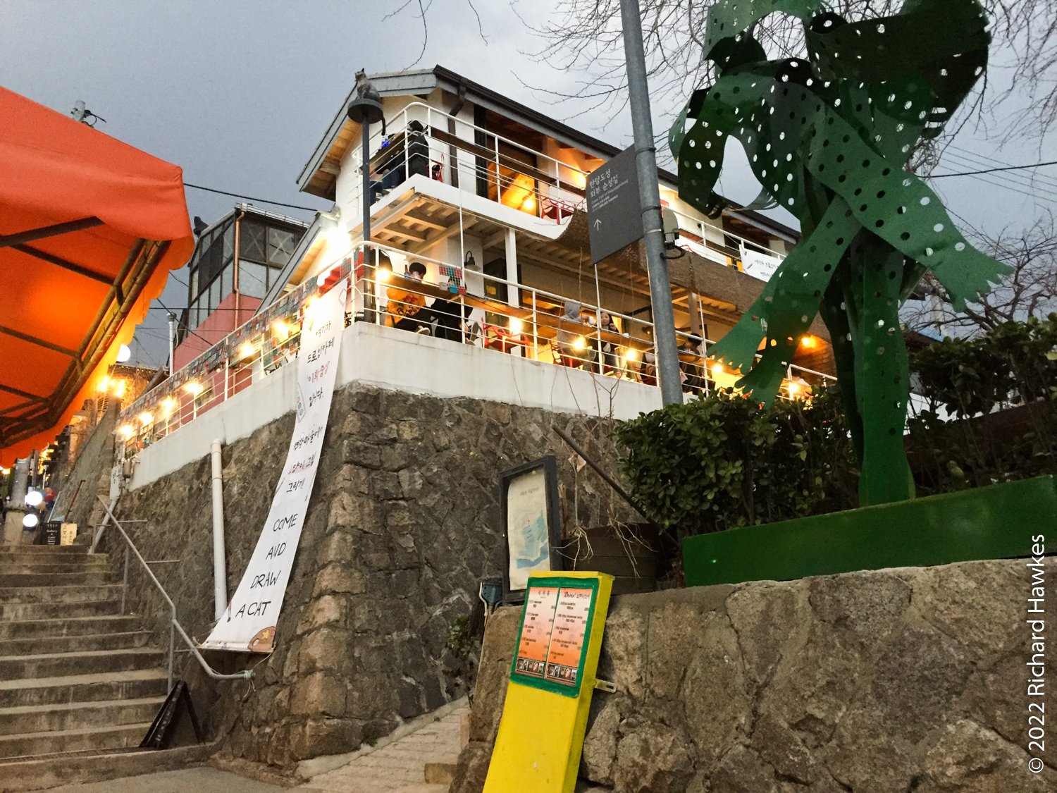 Romana and I walked around the Ihwa and Daehakno area of Seoul one evening. We walked along the City Fortress Wall from Dongdaemun and into Ihwa. There we saw a few galleries, art boutiques and drinking places.