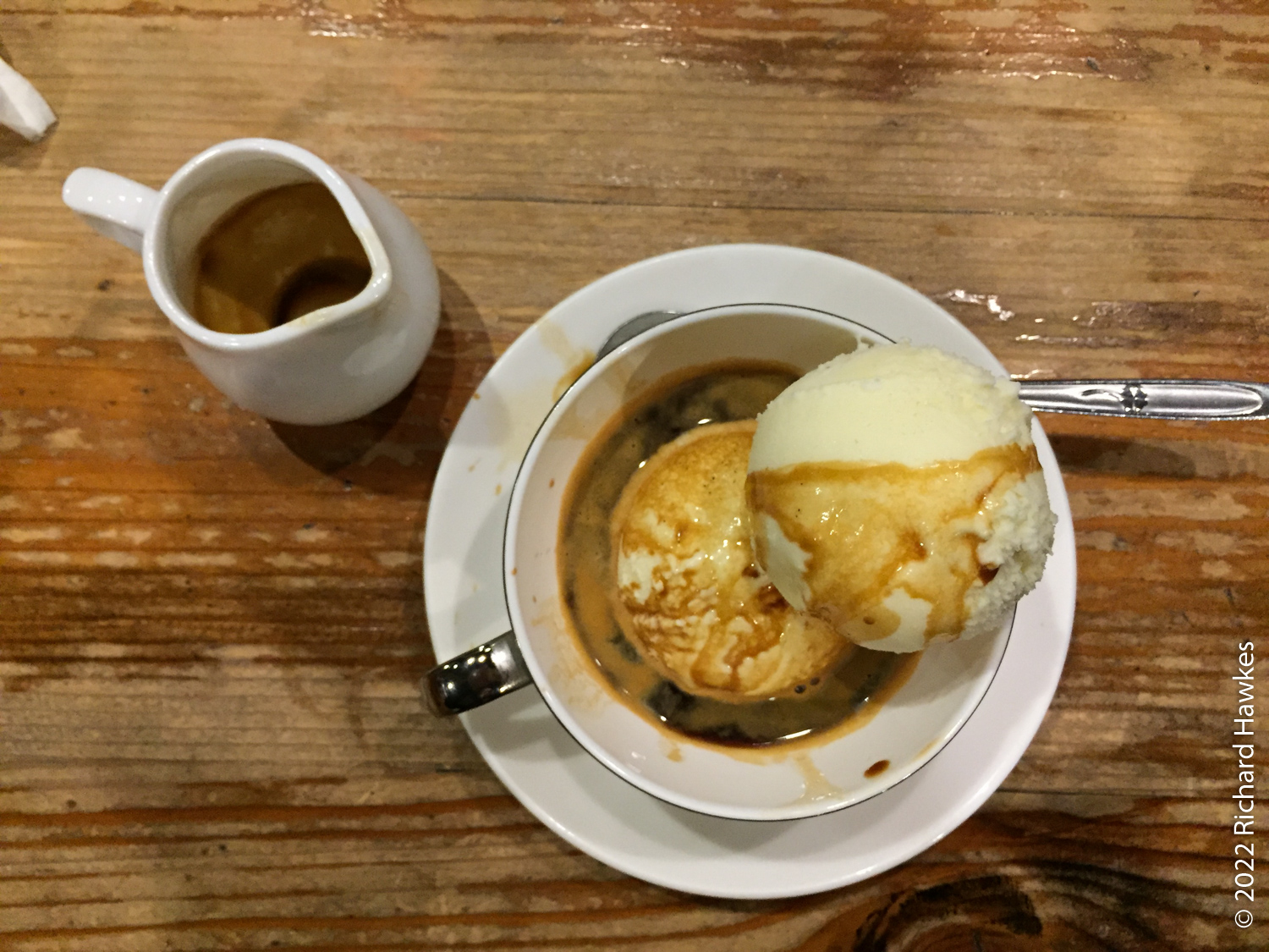 The vibe is wood, old records and sound systems, books on art and culture and large central booths, and little private area in loft spaces. Very nice place to chill out. The menu has coffee, tea, wine and other kinds of booze.