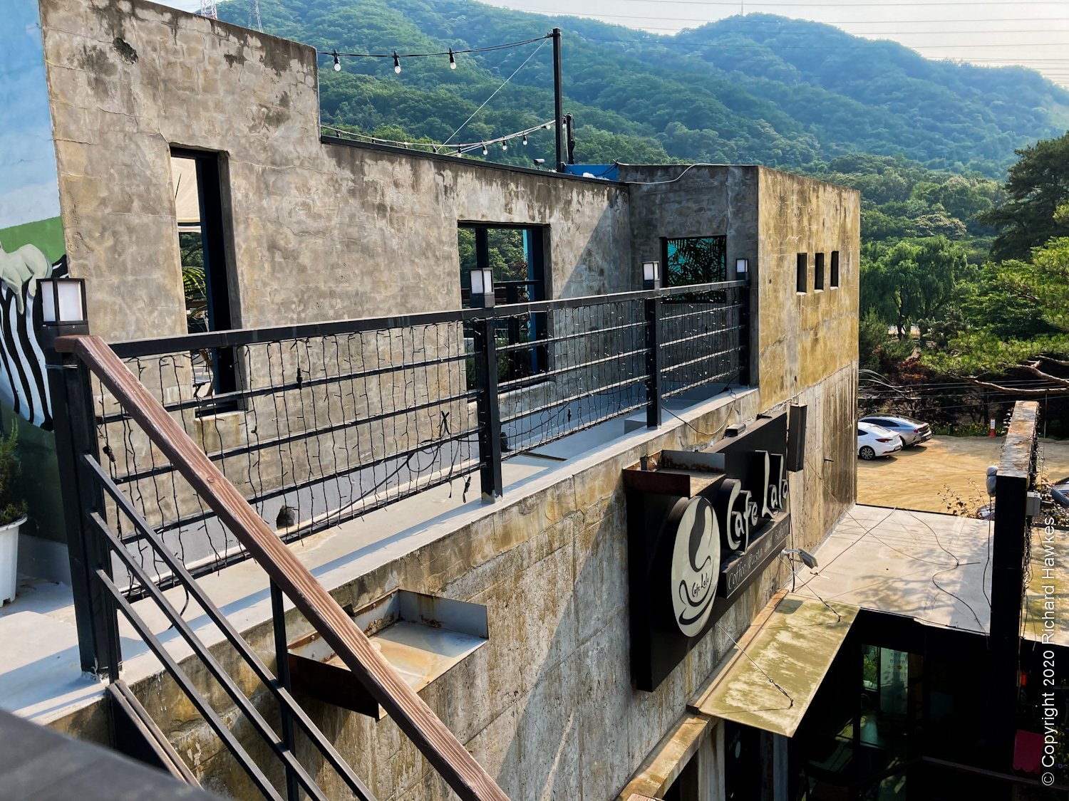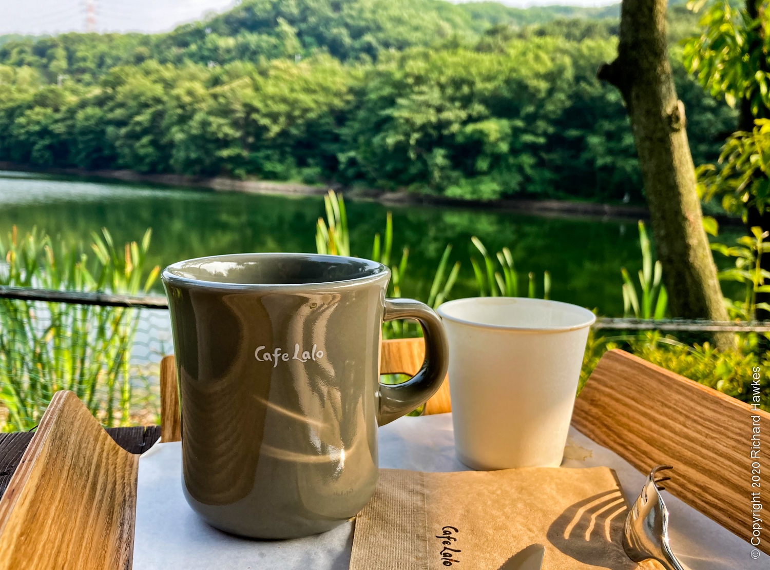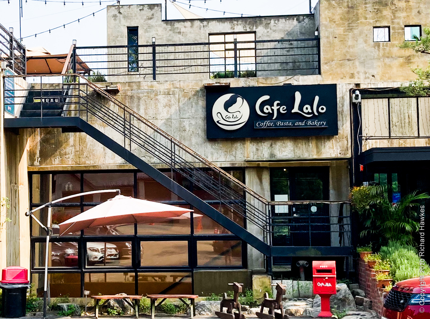 Cafe Lalo (카페랄로) is a cool cafe next to reservoir in Pangyo, in Bundang, south of Seoul. It took an hour to get there from central Seoul and I used a red intercity bus. Another reason was to check the routes into and out of Cheongyesan mountain; it was too late in the day to hike, but I was thinking for another day.