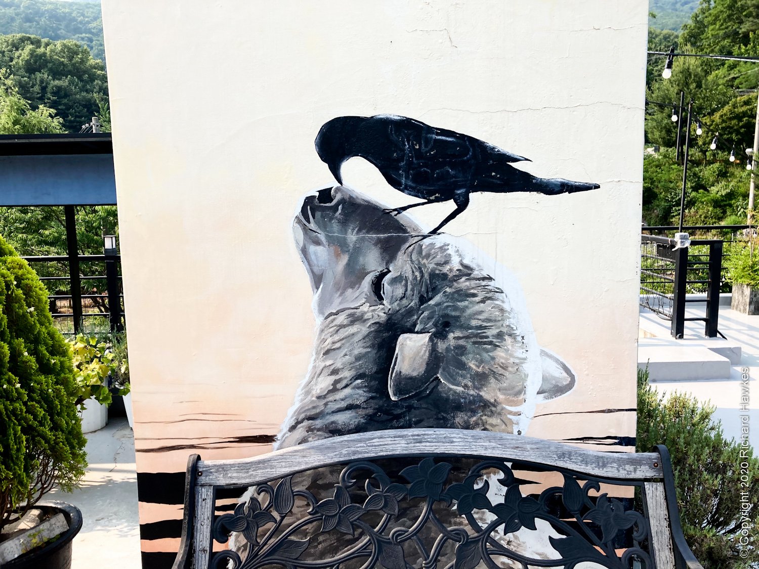 I grabbed my coffee and headed to the rooftop to eat my twist donut. It was a cool space overlooking the lake, and there was some interesting artwork up there too.