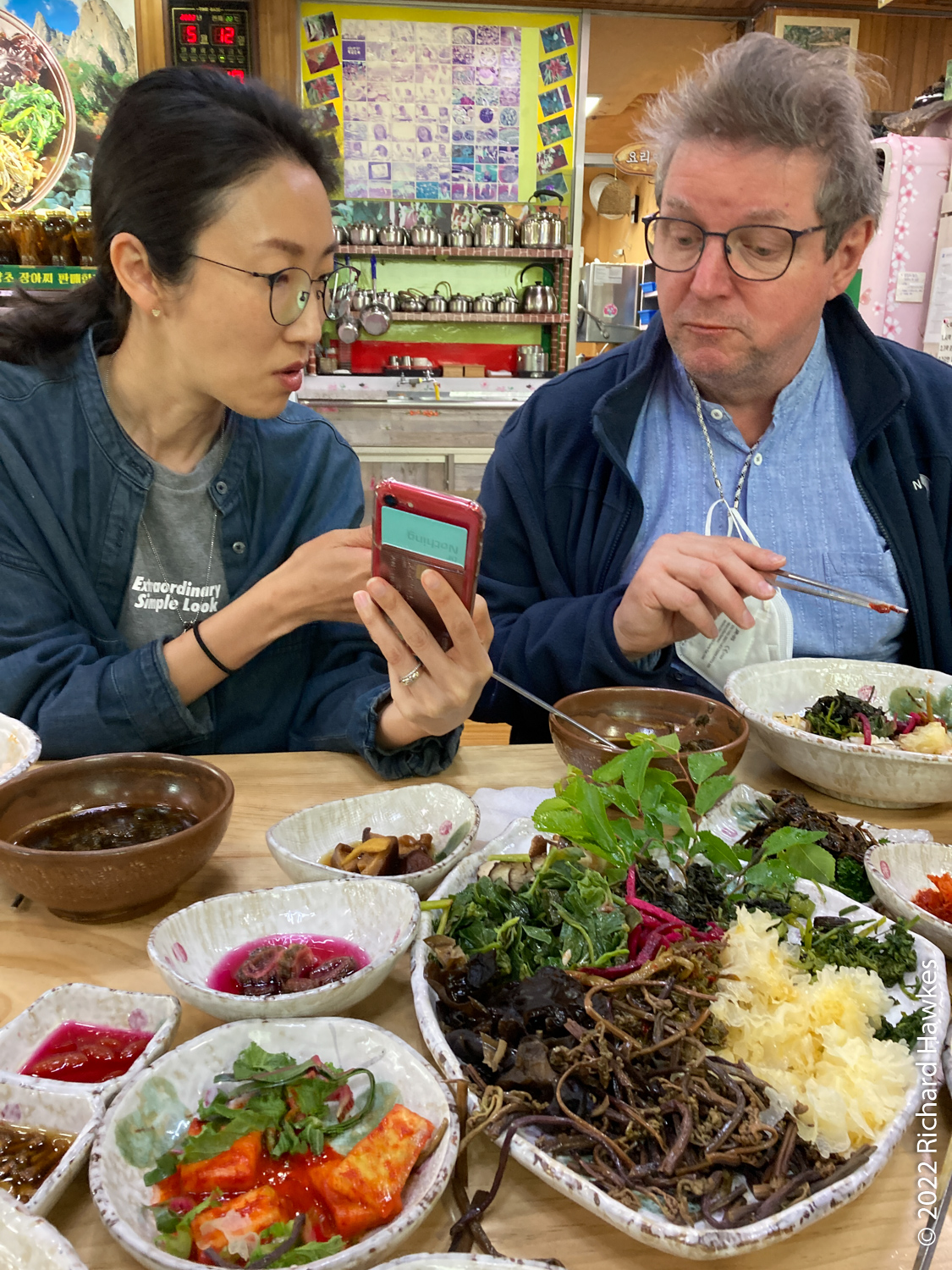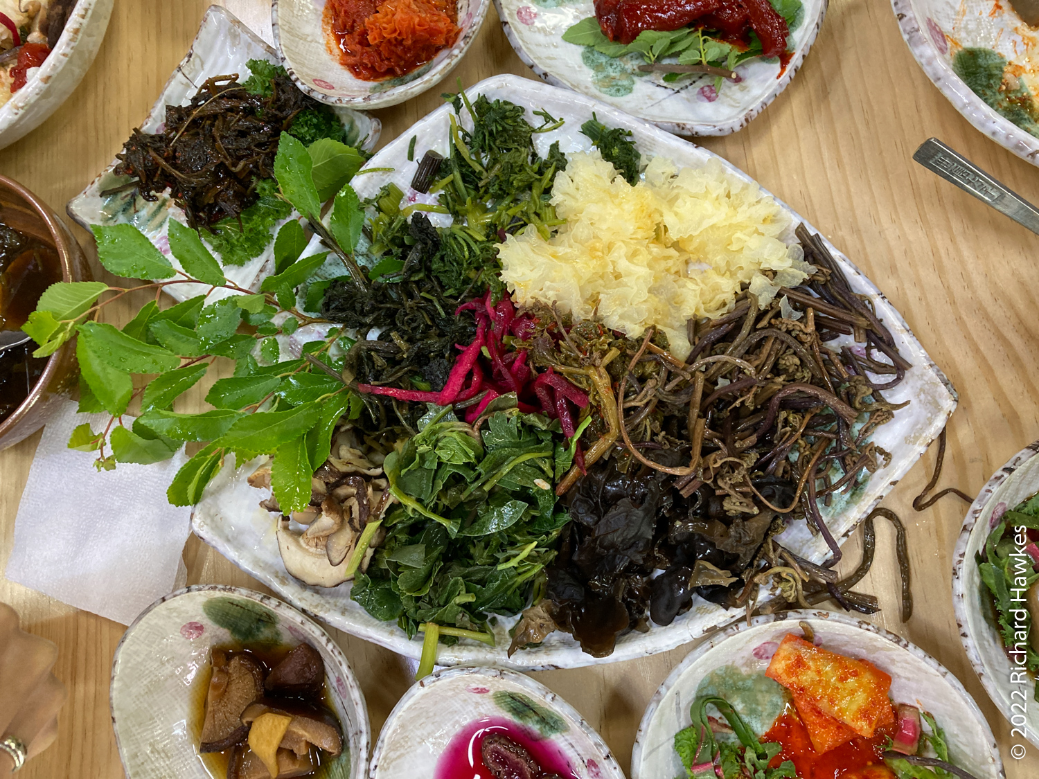 Our final stop was a restaurant that specialised in mountain vegetable bibimbab, called Jeombongsan Sanchae (점봉산산채). Romana explained the many, many seasoned vegetables on offer!