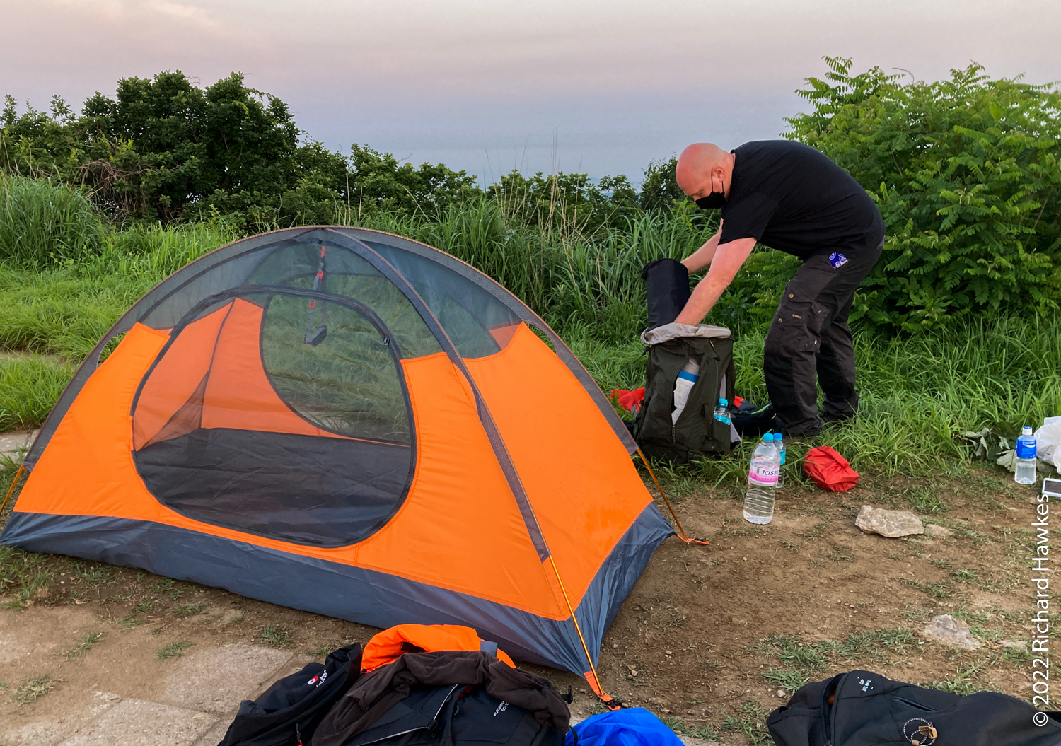 The trail you need to take isn’t on my map app, so had to look out for a right turn at some point. As I neared the peak, the light was fading quick, so pushed on a bit faster. Eventually I found them, plus about six or seven additional groups with the same idea as us! I’m really not sure what the rules are on camping; all I know is that camping on National Park land is a no-no; we however, aren’t on National Park land at this spot.