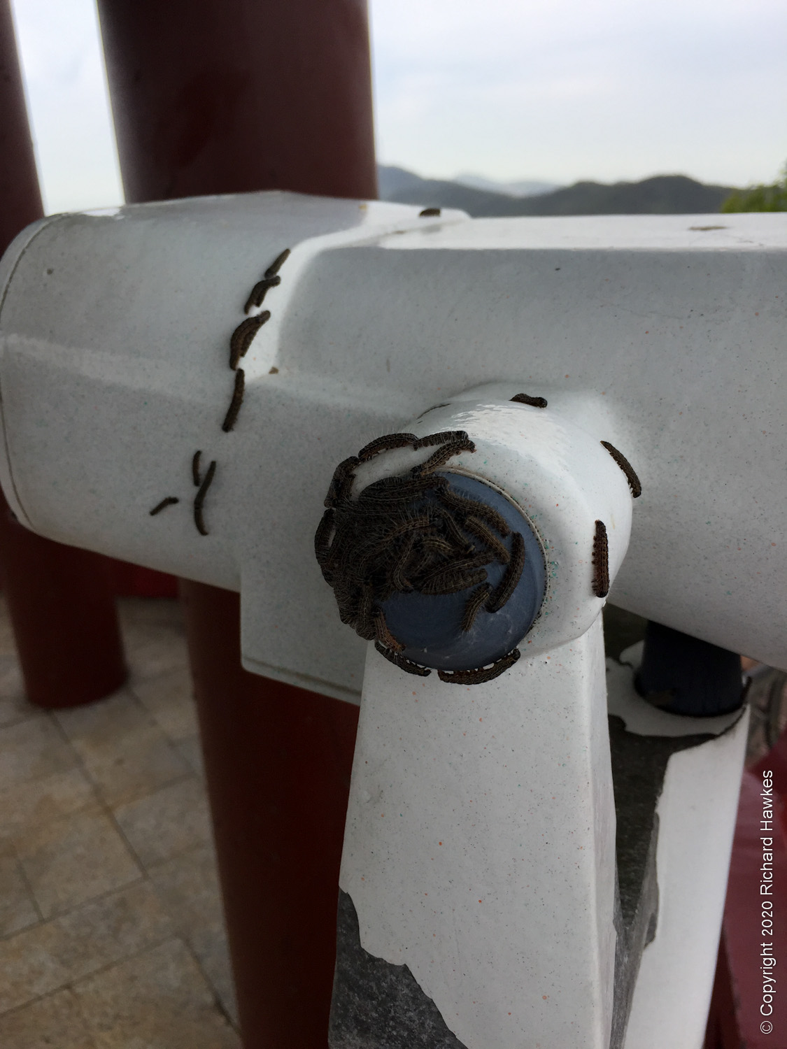 At the peak is a pavilion where you get a truly panoramic view of the island. It’s great. I thought about using the free mounted binoculars at the top, until I noticed the eye pieces were covered in caterpillars. Nope.