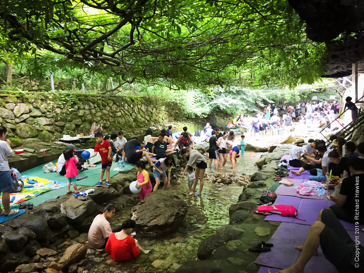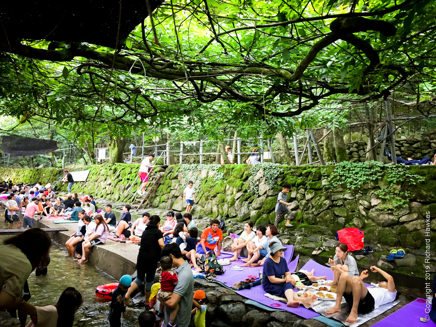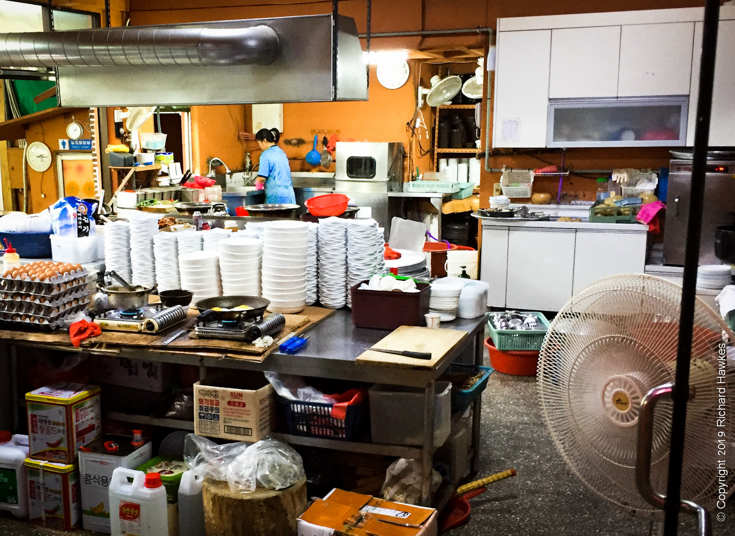 Walking back from Donghaksa, we spent a lot of time trying to pick a place to eat. I wanted lively, usually a sign of good food. However, with literally dozens of entrances to choose from, it wasn’t easy; the restaurant interiors weren’t visible from the road and in most case, you had to go through a little tunnel and steps or ramps down to the restaurant, where a whole world of people, chatter and eating would appear. Amazing really.