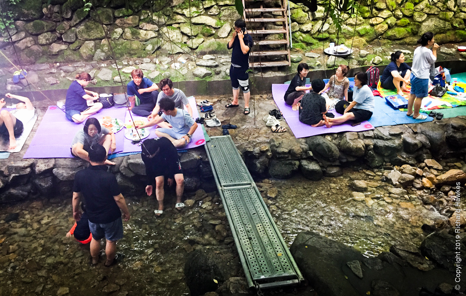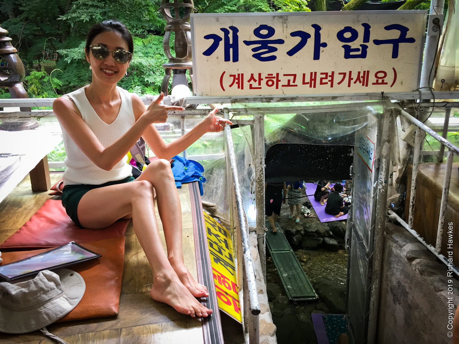The restaurant (계룡산식당) was ‘open air’ but covered and over looked the stream. There were more steps leading down to the actual stream where you could also eat your meals and play in the cool water. It was busy and lively, but also had plenty of space for us! We opted to eat in the part overlooking the stream since it looked comfier.