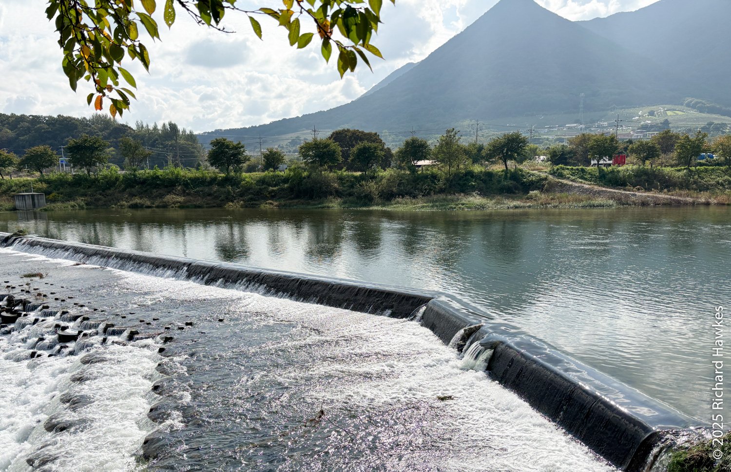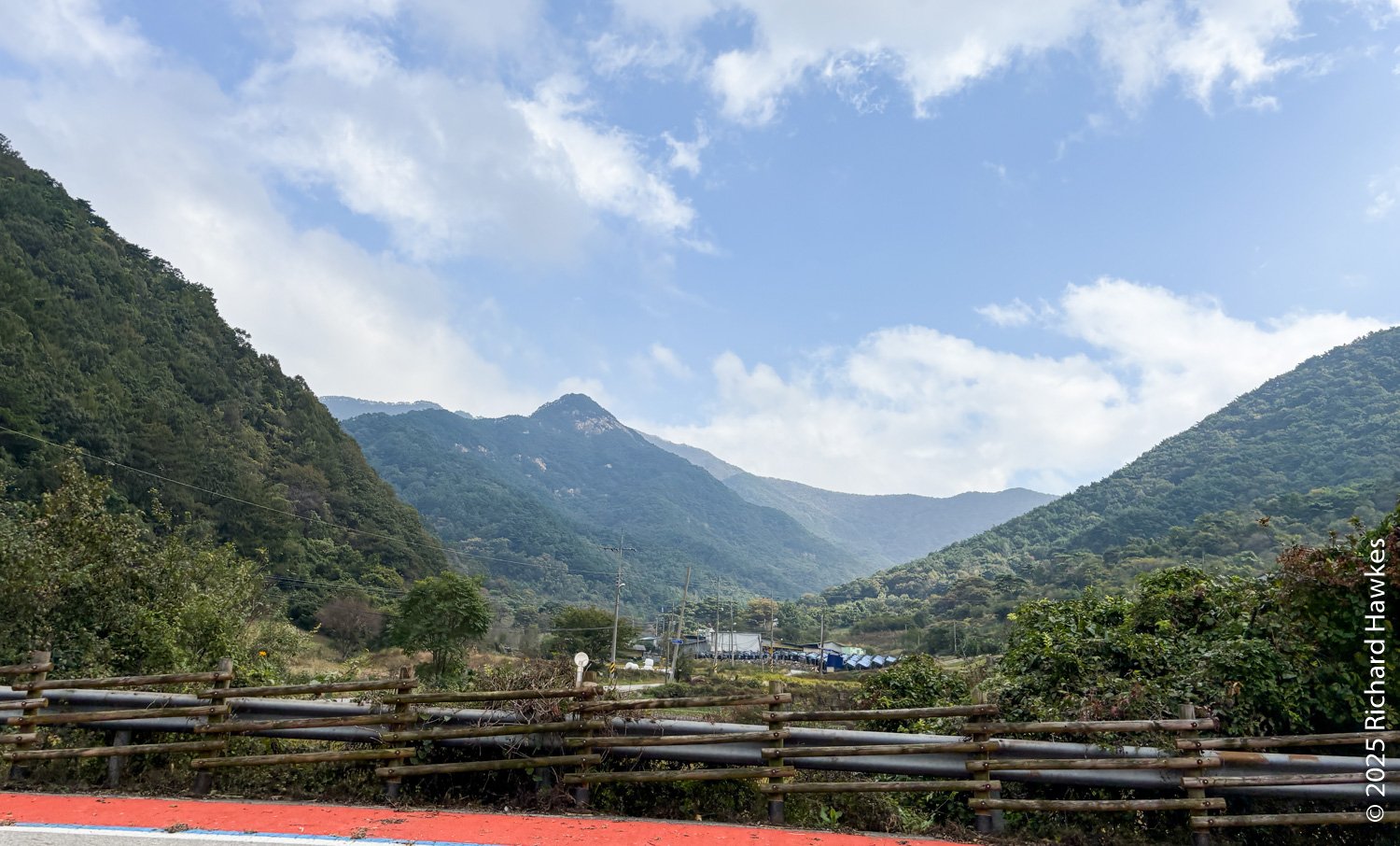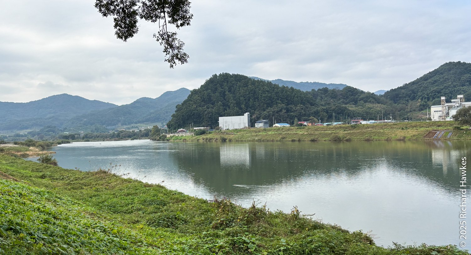 The 6 am bus got to Chungju at 7:45 and I was on the cycle path by 8:06! The plan was to take it gentle and make more stops. I also had an idea this part of the path went over a mountain so I’d probably have to take that quite slow, even walk it, so the earlier the start, the better. Anyway, I was off to a good start. It was about 6° so the chilliest I’ve been for a whole! I passed the sewerage plant from my previous outing and continued on past some small river- and roadside houses. Very pleasant.