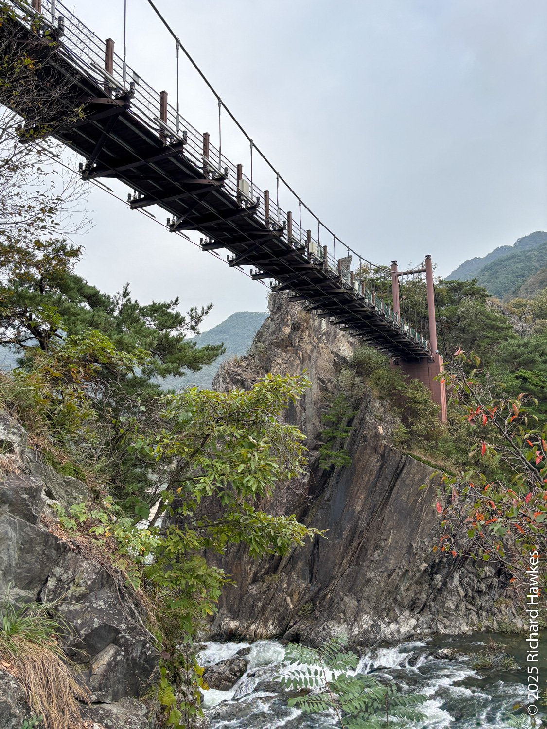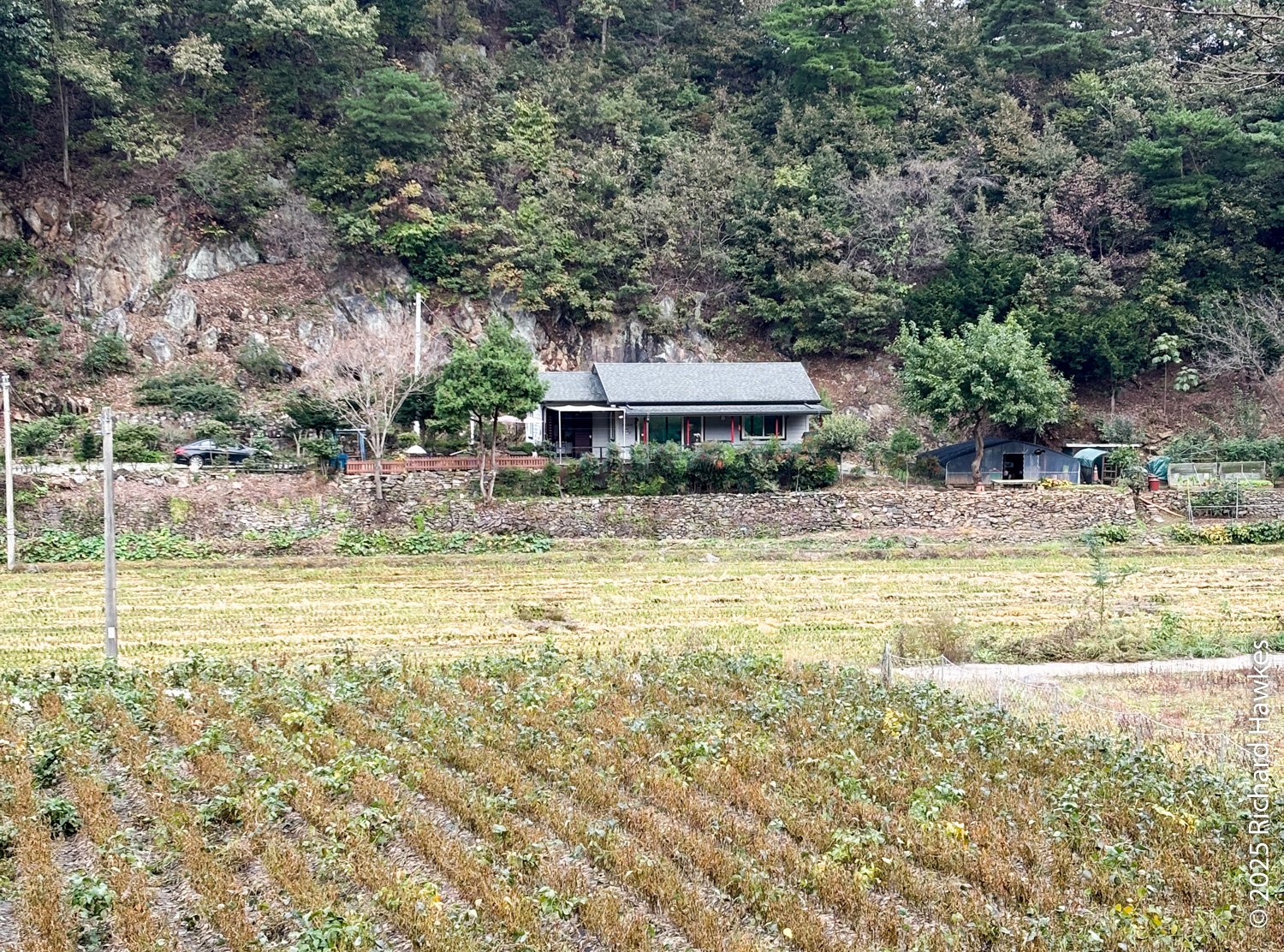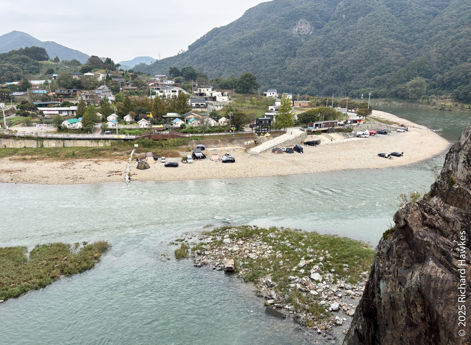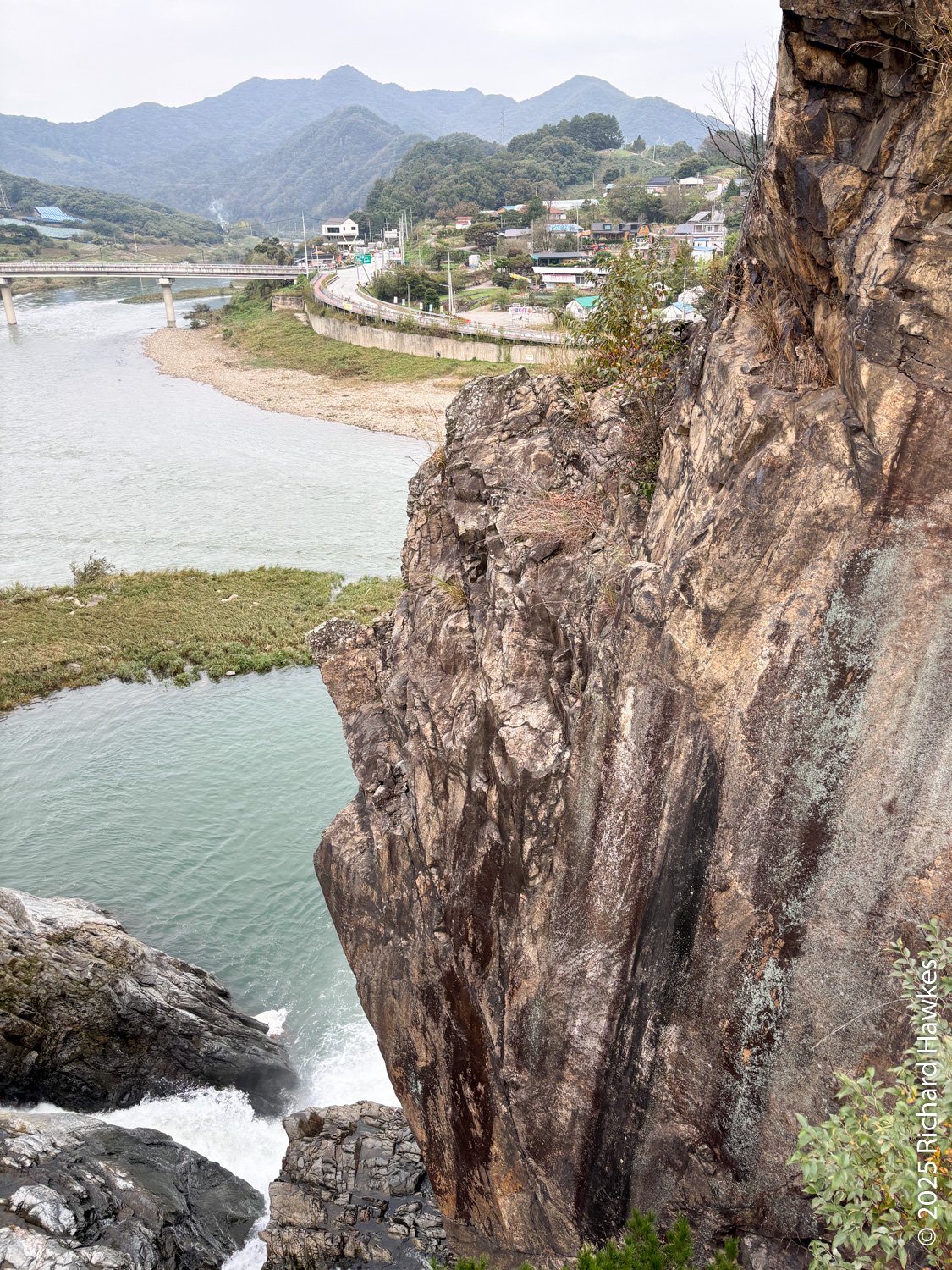 The 6 am bus got to Chungju at 7:45 and I was on the cycle path by 8:06! The plan was to take it gentle and make more stops. I also had an idea this part of the path went over a mountain so I’d probably have to take that quite slow, even walk it, so the earlier the start, the better. Anyway, I was off to a good start. It was about 6° so the chilliest I’ve been for a whole! I passed the sewerage plant from my previous outing and continued on past some small river- and roadside houses. Very pleasant.
