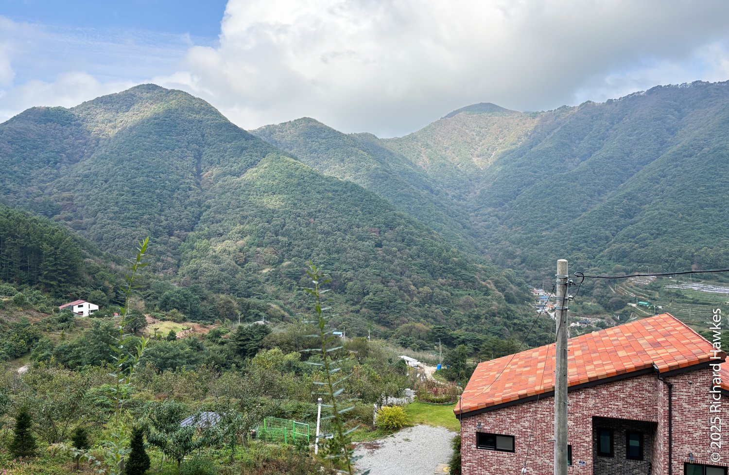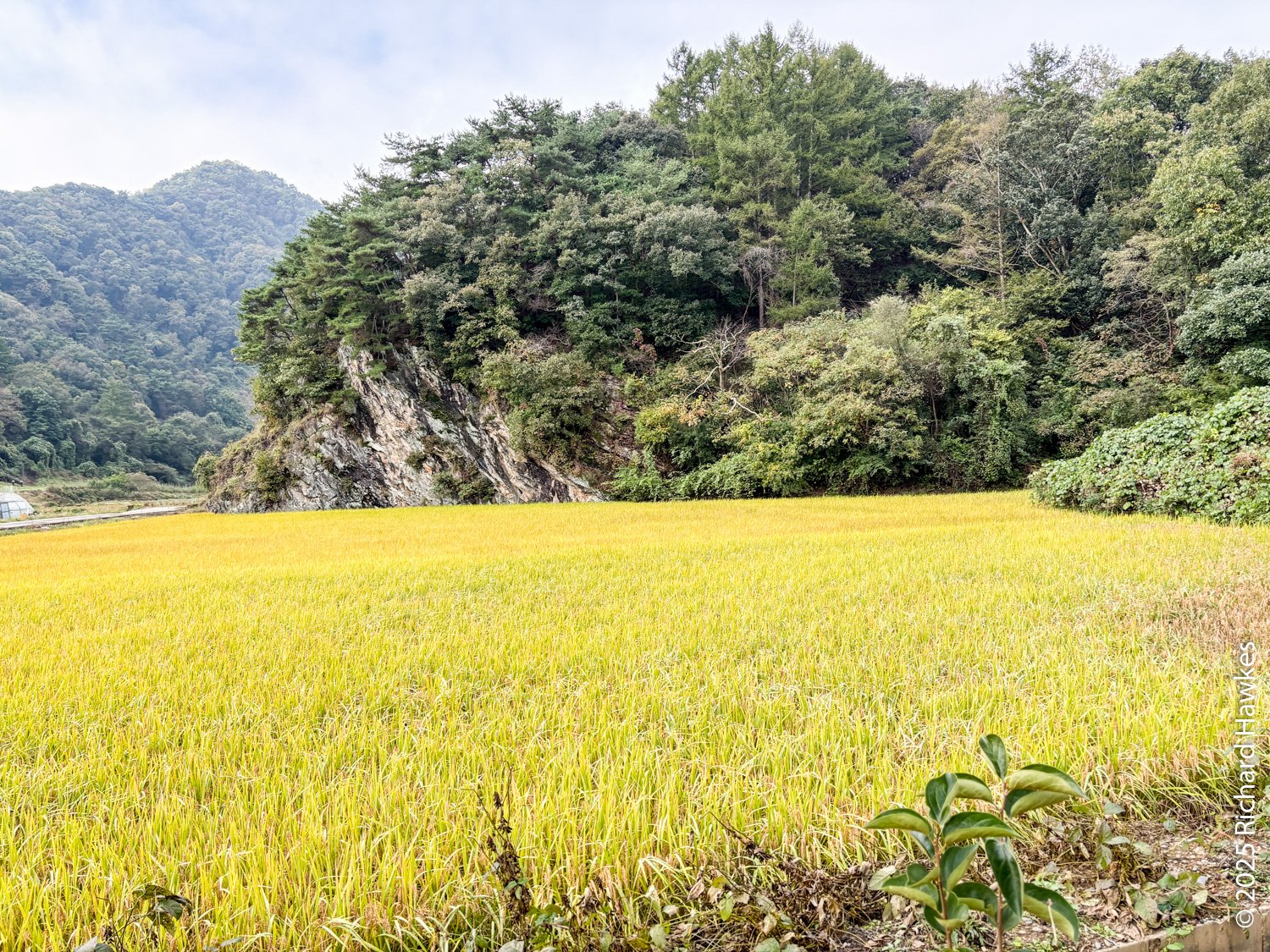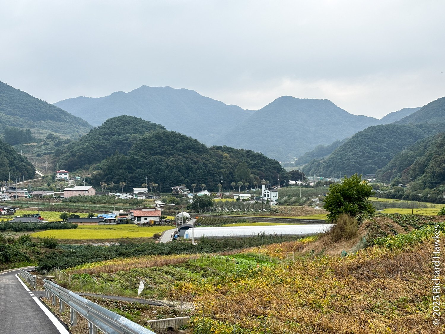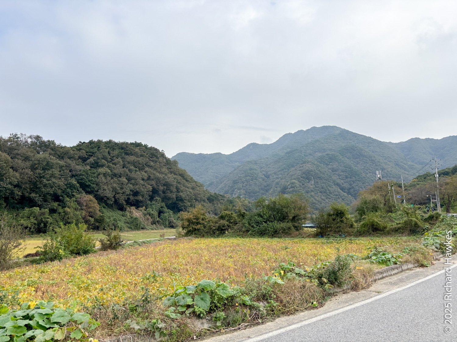 At the bottom, you pass through Mungyeong (there’s a bus station, accommodation there and some sights there but I didn’t stop) and then into rice farm land. The main trail actually takes you along a river but there was construction work on the road so I had to detour through the gorgeous yellow rice paddies with mountain backdrops. With the sky and lighting as it was, it was truly breathtaking. So, go through the rice fields and rejoin the trail later is my advice, depending on the season!