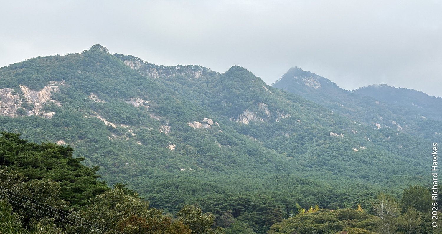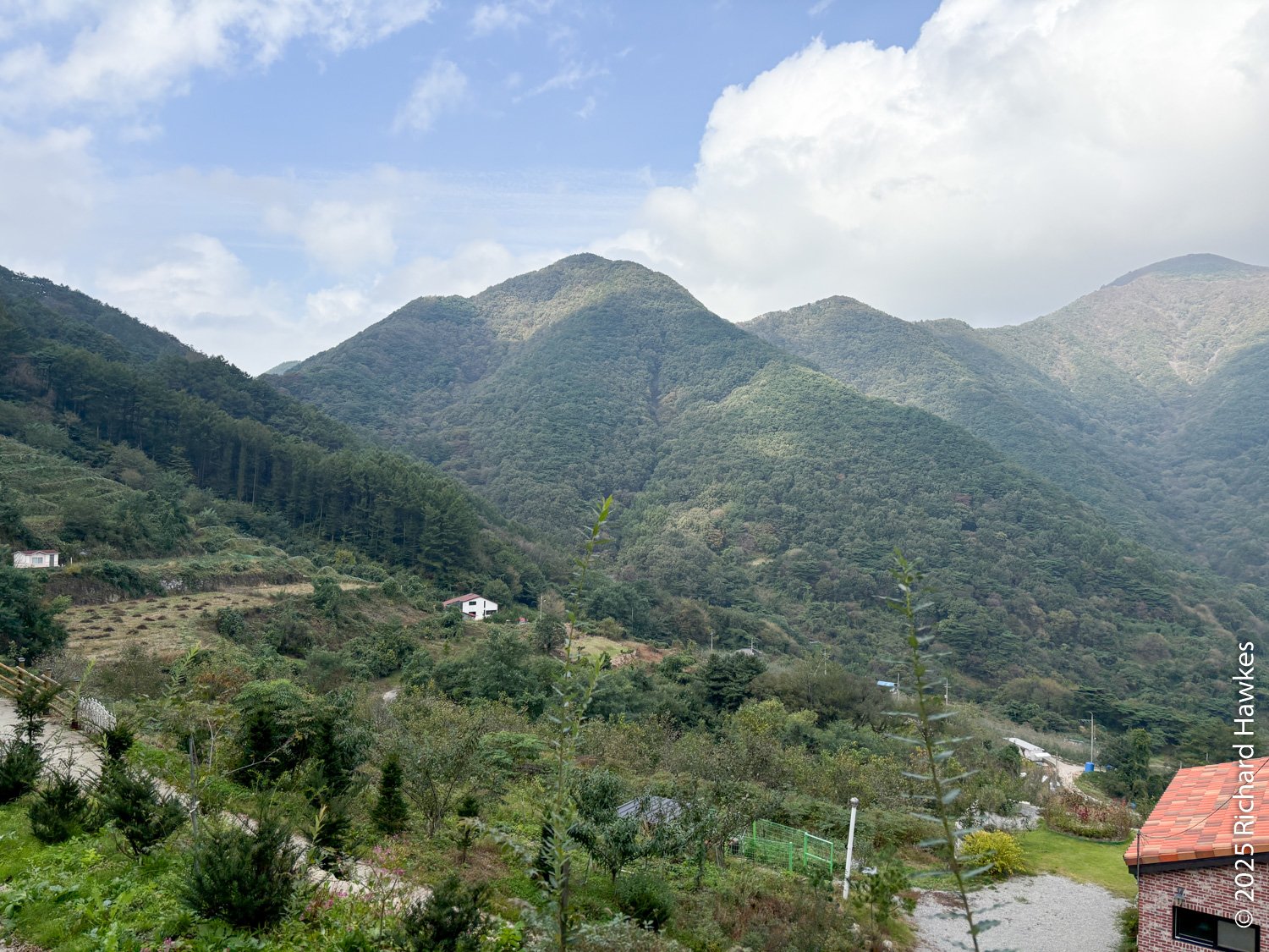 I got to the top at about 12:40, a good two hours after Suanbo! The place is the Ihwaryeong Rest Area (이화령휴게소). I stopped here for about 40 minutes, getting my second stamp, a cappuccino, and eating the rest of my sandwiches. I also finally chatted to the couple who it turns out were from Australia or New Zealand (forgot to ask, so just going off of accents). While there, some super buff tanned guy cycles up full speed, shirt off, fully masked with really loud techno blasting from his Bluetooth speakers. I’d have been annoyed ordinarily, but the sight was just too bizarre. No, I didn’t get a photo, the guy looked too intimidating! It was anyway, a great place to relax with views down the valley where you could appreciate why it took so much effort to get up.