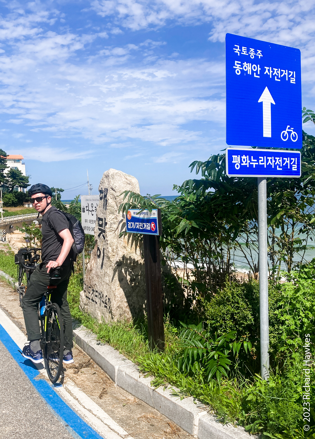 Gareth and I cycled 160 km from Daejin near the North Korean border, south to Donghae. We did a leisurely ~50 km a day. The route is along the 동해안 자전거길 (Donghae-an Cycle Path) and this trip was the end of September, 2023. This is part of the 4 Rivers / Cross-country cycle path network.
