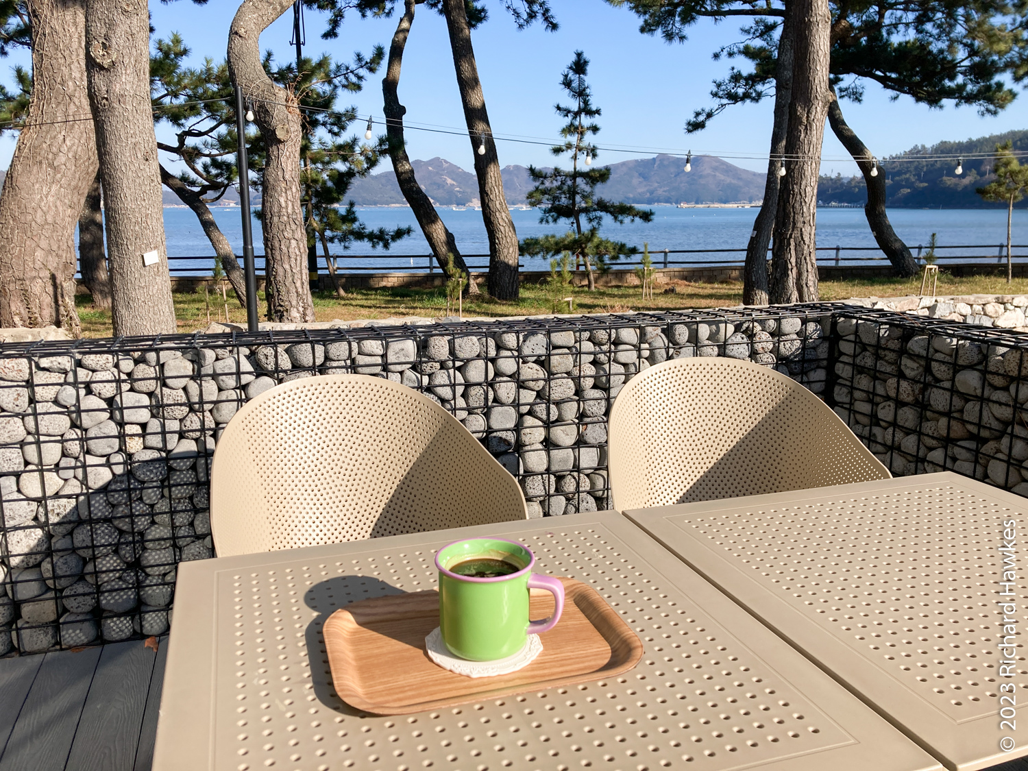 I went to a cafe called Livin (리빈). It’s at a beautiful spot on the east coast, very peaceful with a little garden and a view of the sea.