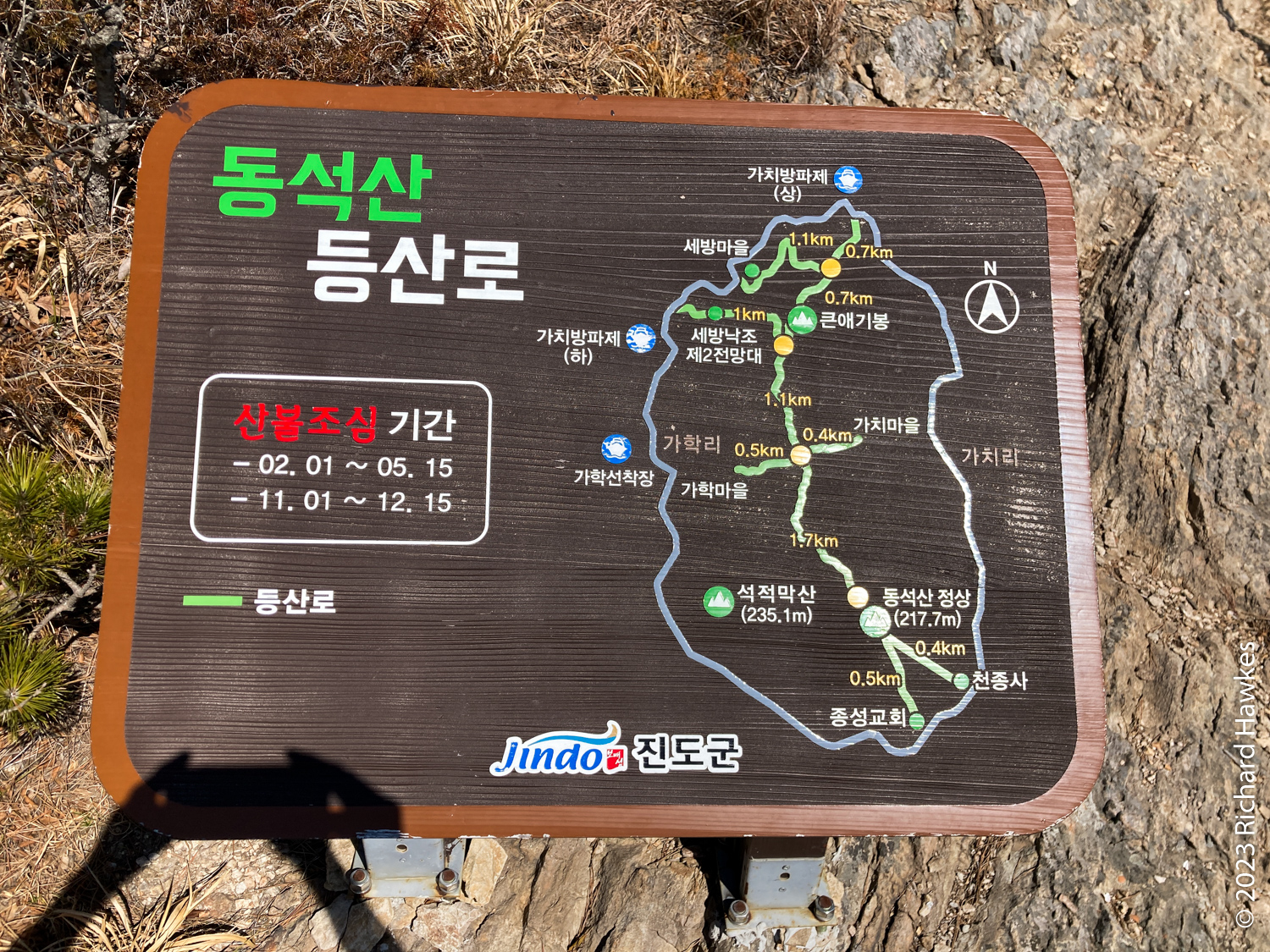Today, I hiked up Dongseoksan (동석산), a cool, isolated mountain on the south west side of Jindo Island way down south below Mokpo (목포).