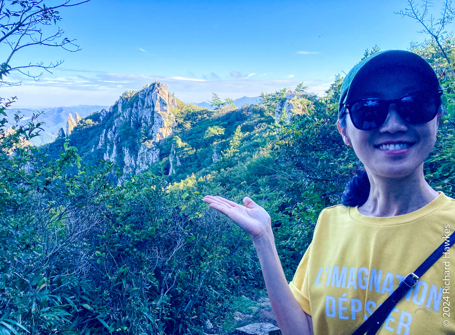 From here you can drive most the way up on an army built road and park near the trailhead for Dosalam Hermitage (도솔암). The carpark is tiny (three spots plus a few on the roadside?!) so get there early if you’re driving. Fortunately mid-week we were the only ones there. From the carpark, there are great views. You then hike about 800m along a forest trail north. Along the way, there are other spots you can get views westwards and also the amazing rock formations along the ridge of Dalmasan.