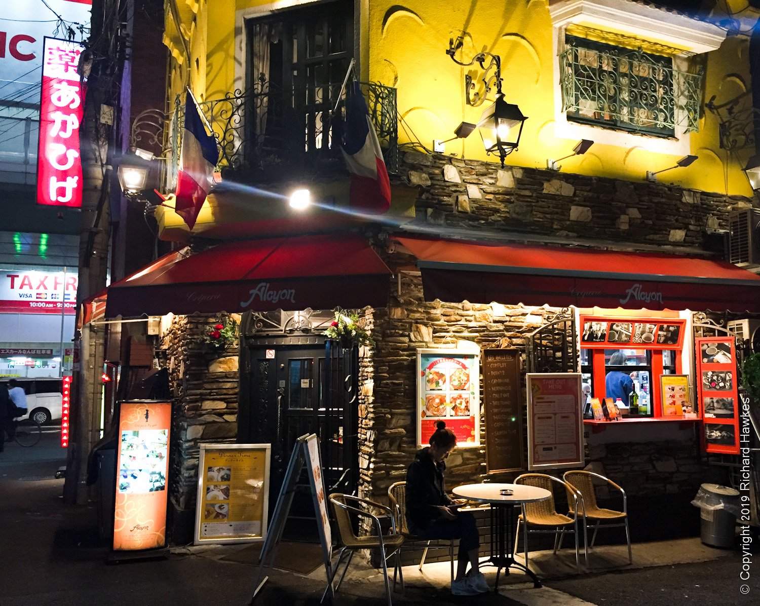 We stopped off for a crepe at Alcylon. a very European looking place. This street had a shop selling ceramic cats, and out of the alley and on to the main street was a shop selling ‘potions’ to keep the man in your life going all night.