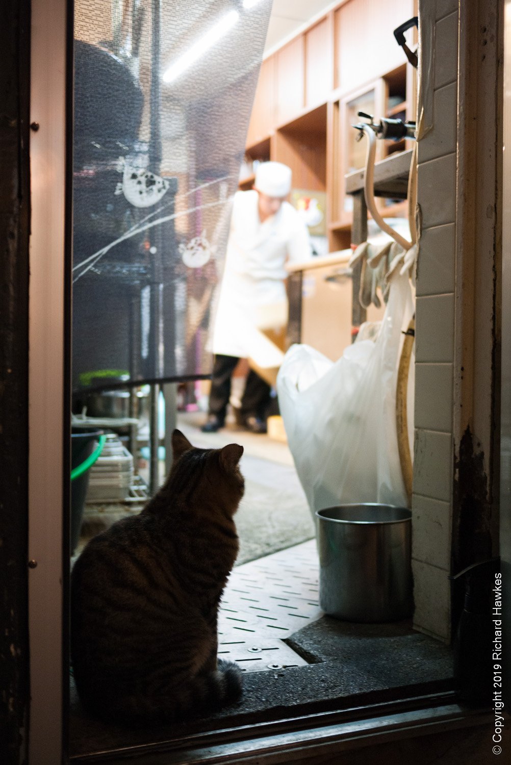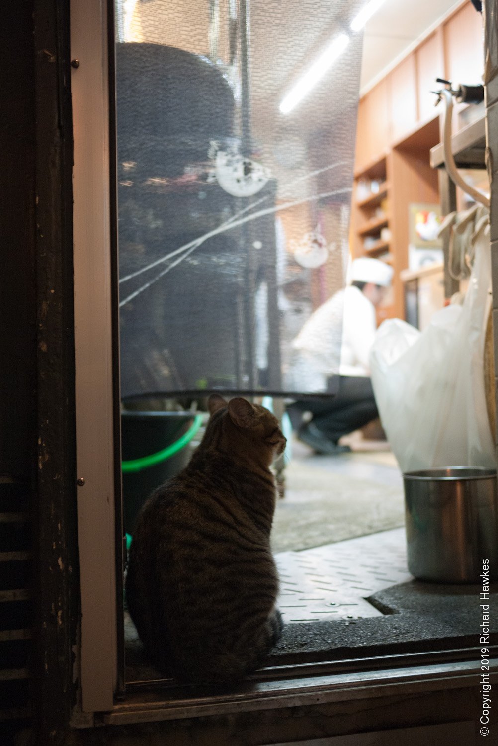 And of course in Japan, there is an abundance of real cats, one particularly cute one waiting outside a kitchen door.