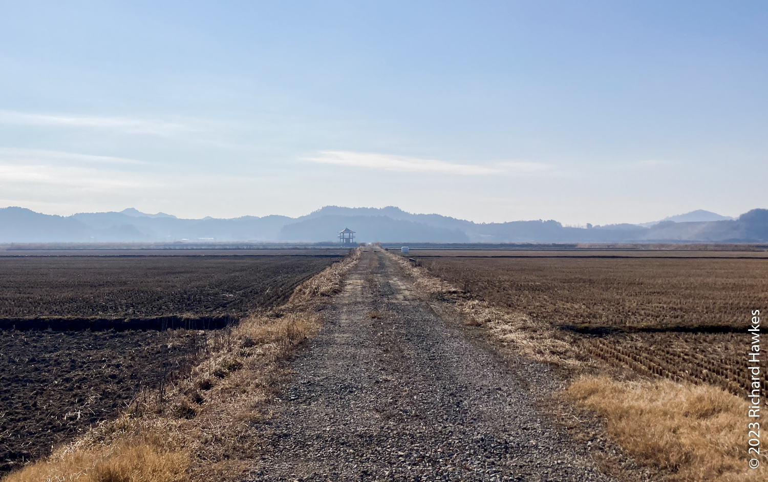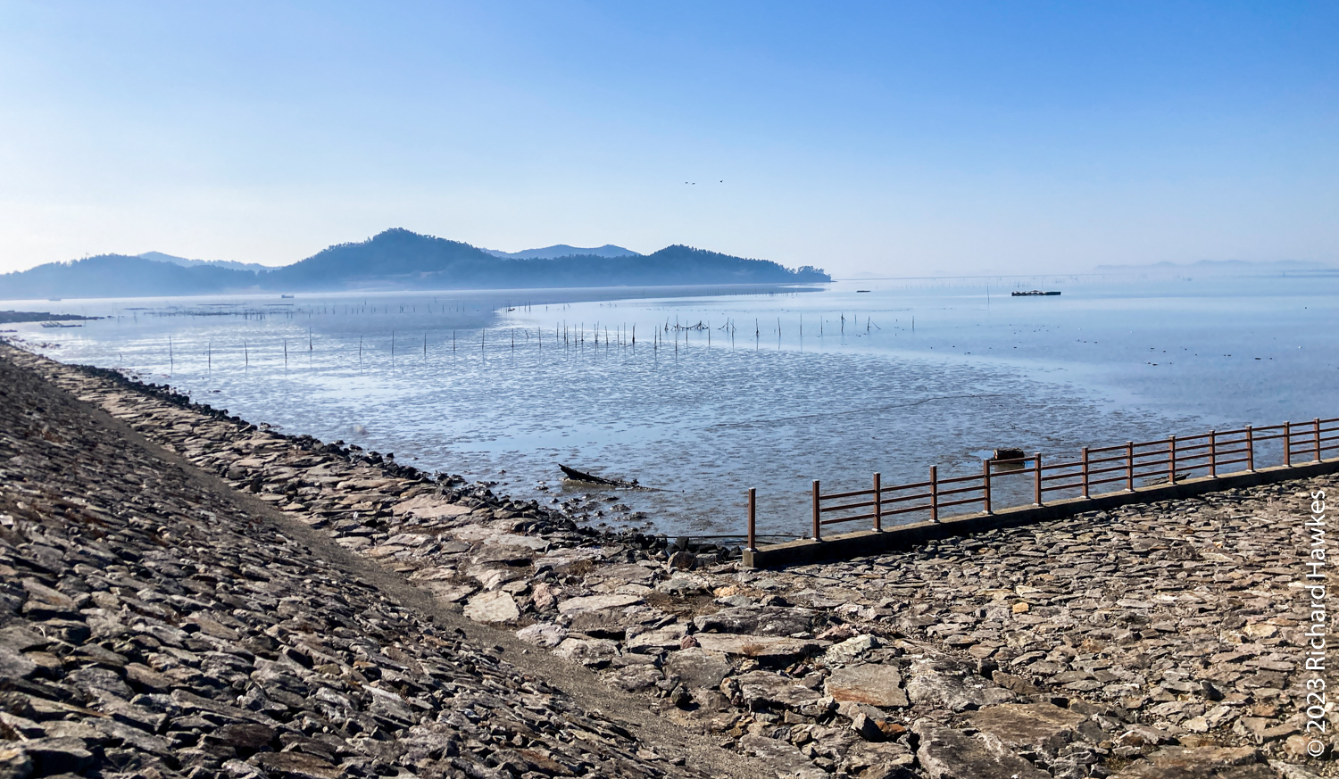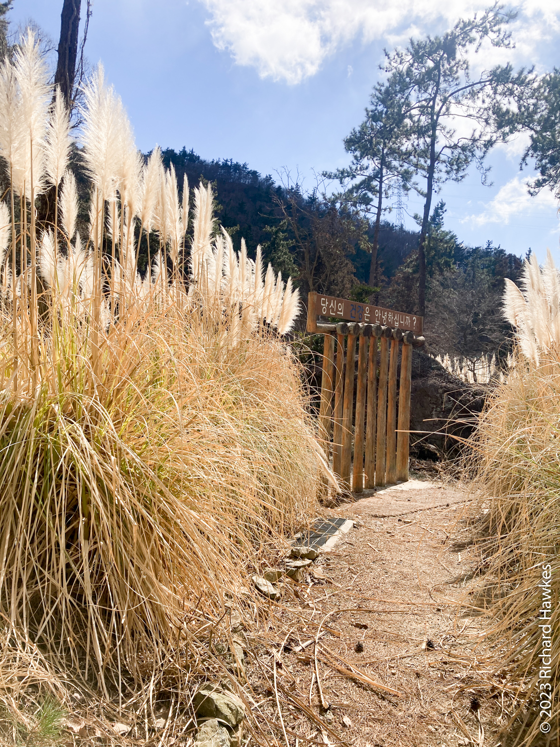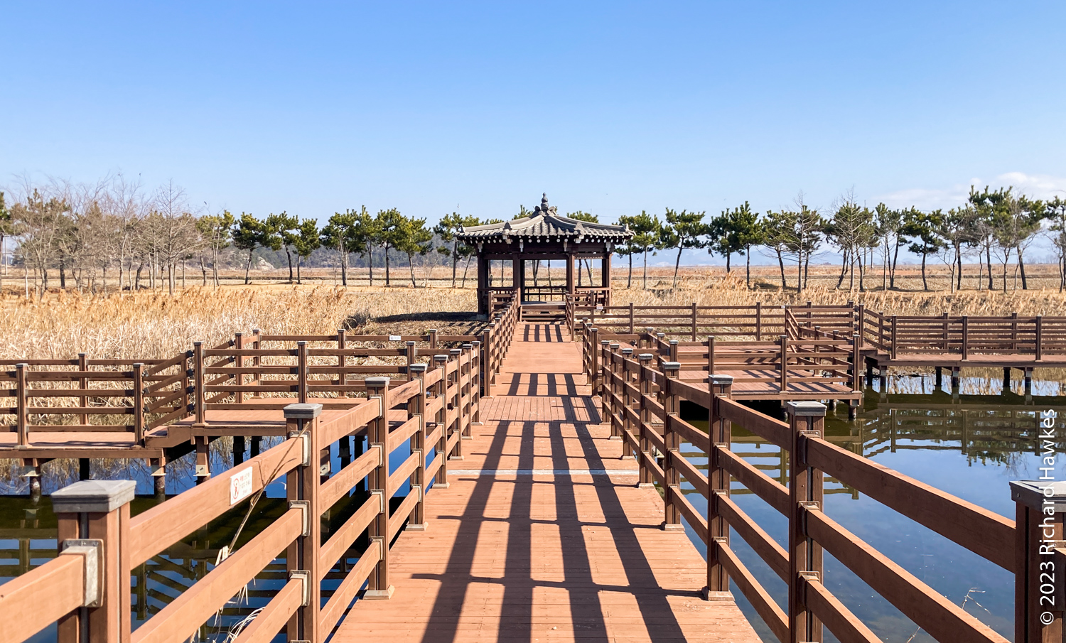 I started off early and collected my SOCAR from Mokpo train station, and headed straight to Haenam. I’d heard there were vast fields of reeds on flood plains at Gocheon (고천암갈대밭). Photos I’d seen of the area looked gorgeous, but when I got there, the lush green reeds had all been harvested! There was still a somewhat bleak beauty to the area, though, and I spent a while walking around. I’d love to come back when it’s lush and green. I also took a quick walk around the Eco Park (고천암자연생태공원).