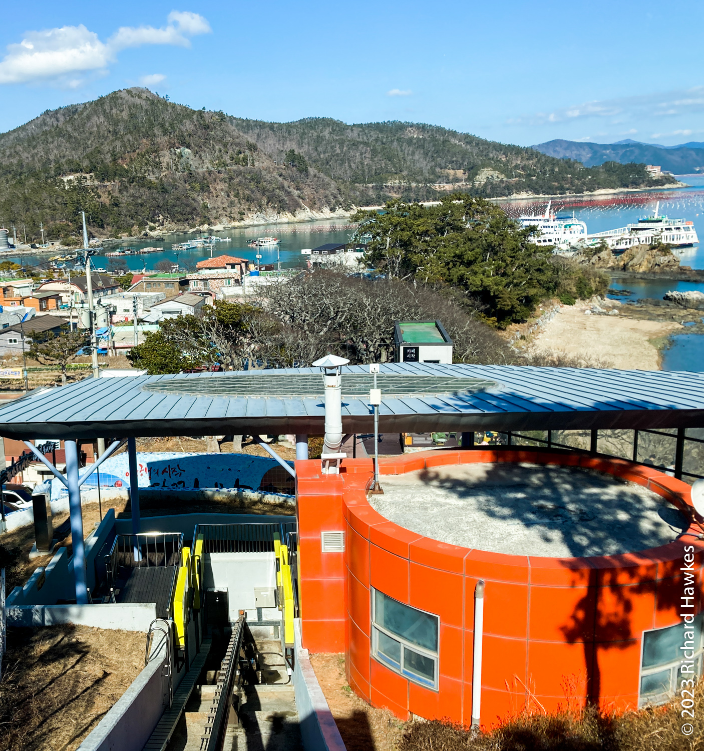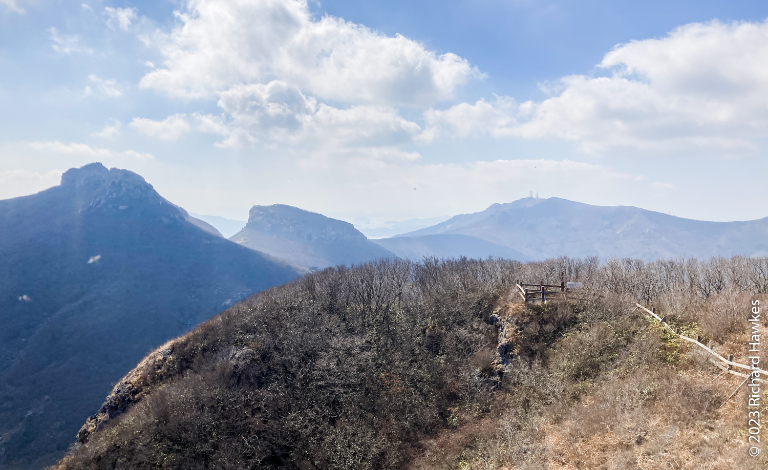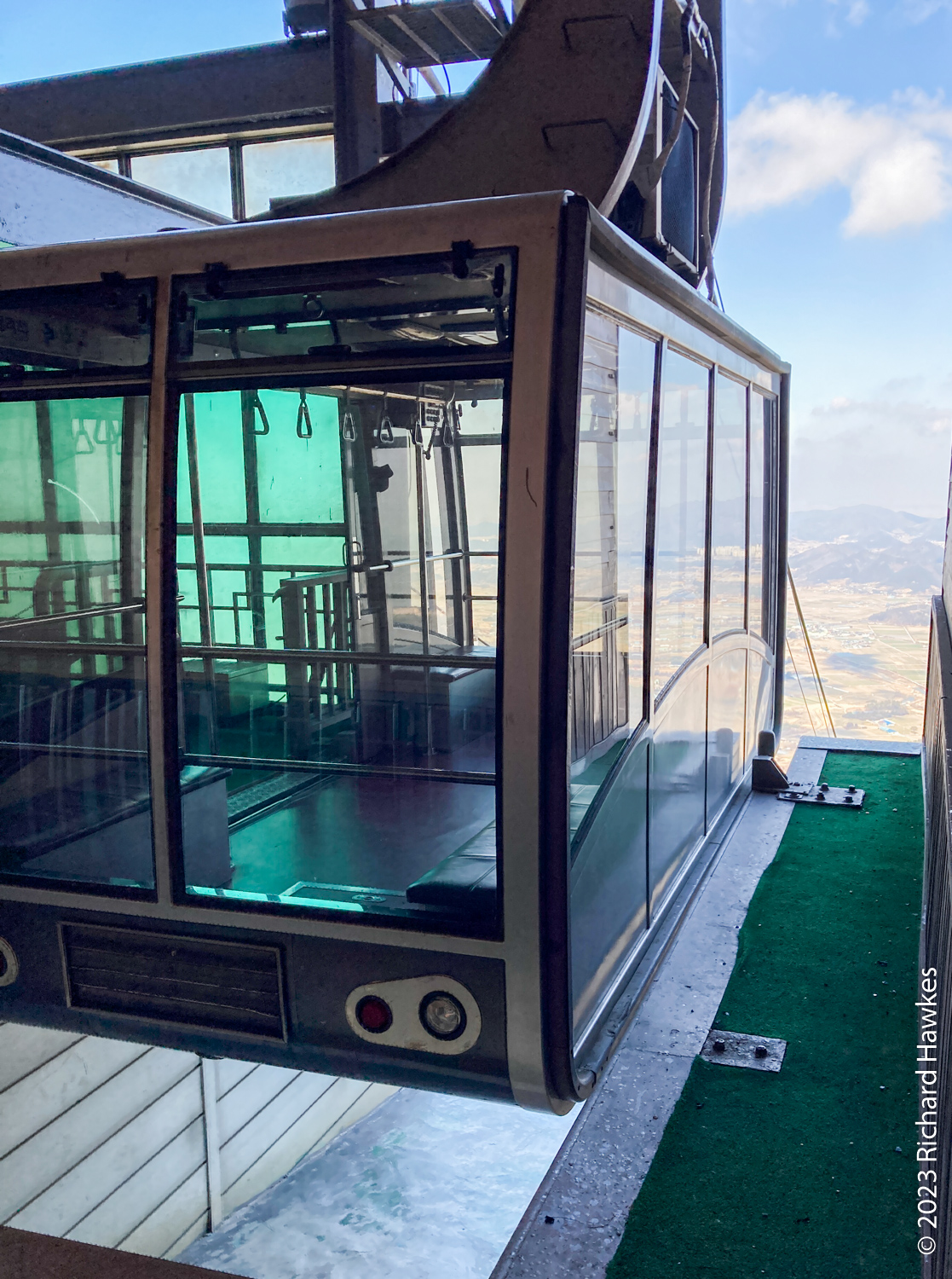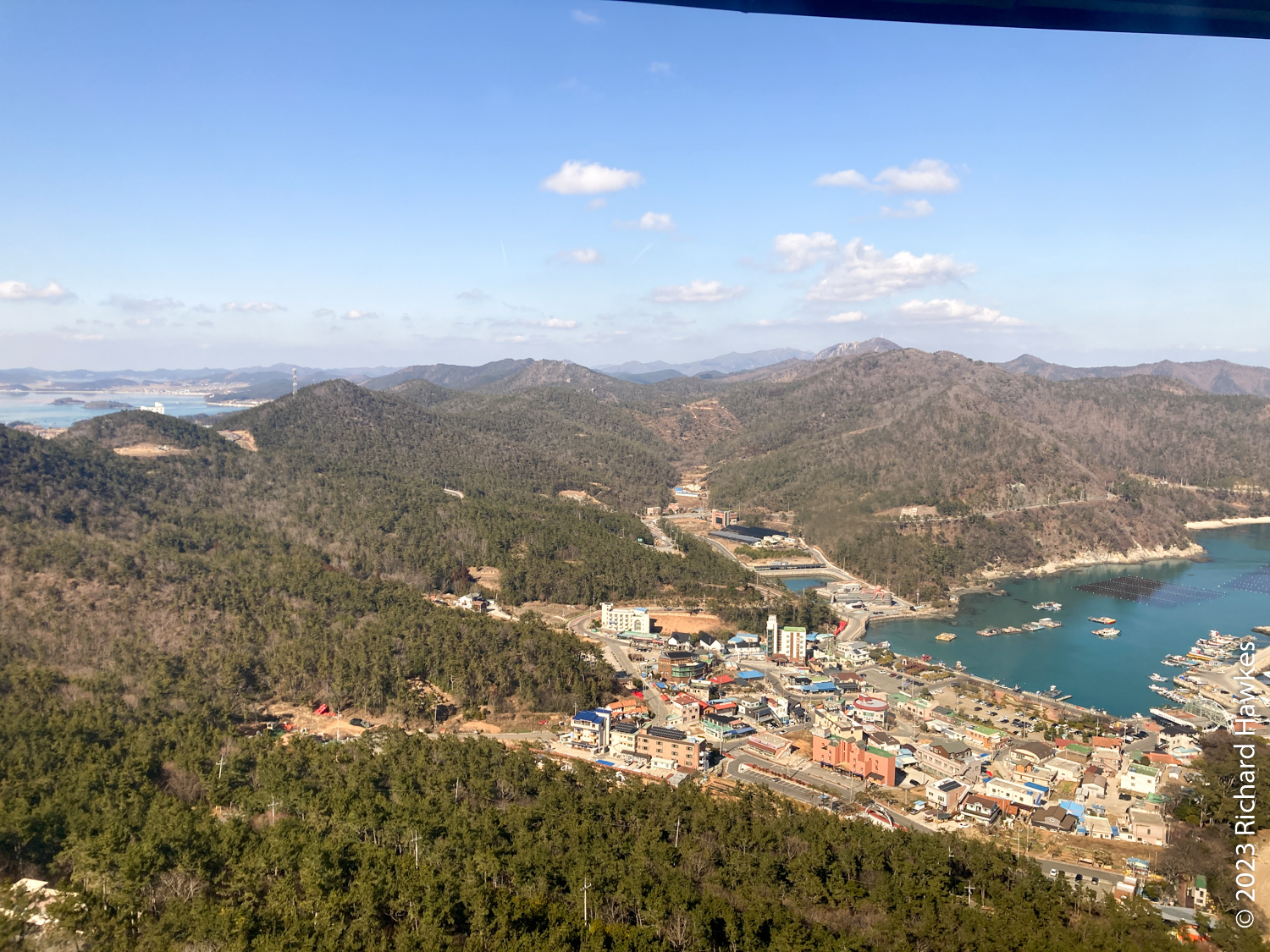 Next, I drove Duryunsan Mountain cable car (두륜산 케이블카). The cable car takes you to Gogyebong peak (고계봉). You can see for miles all around. Being February, the landscape was mainly brown and yellow. Also, the air quality wasn’t great, but it was still worth going up for the views.