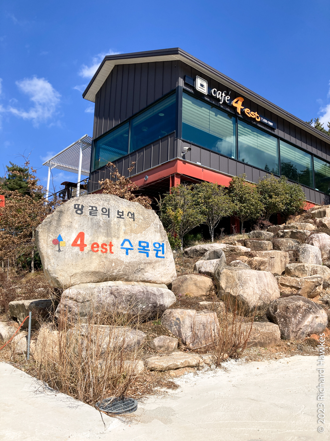 I decided to head south and sea some see. On the way, I stopped at Cafe 4est for a drink before exploring Forest Arboretum (포레스트수목원), the garden/park that was attached. I wasn’t planning on paying and going in, but a woman who worked there said to just go in and she encouraged her dog (a cute jindo, that was running around freely and happily) to go with me. It turned out to be quite big and quite interesting. There were many little themed sections, basically for Instagram shots! The garden was interesting and peaceful though and I enjoyed walking around.