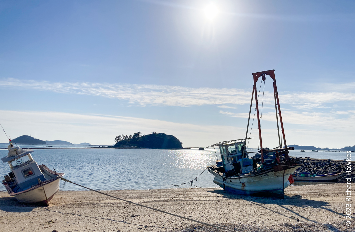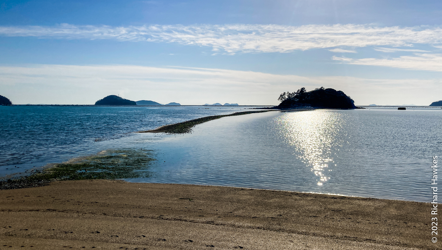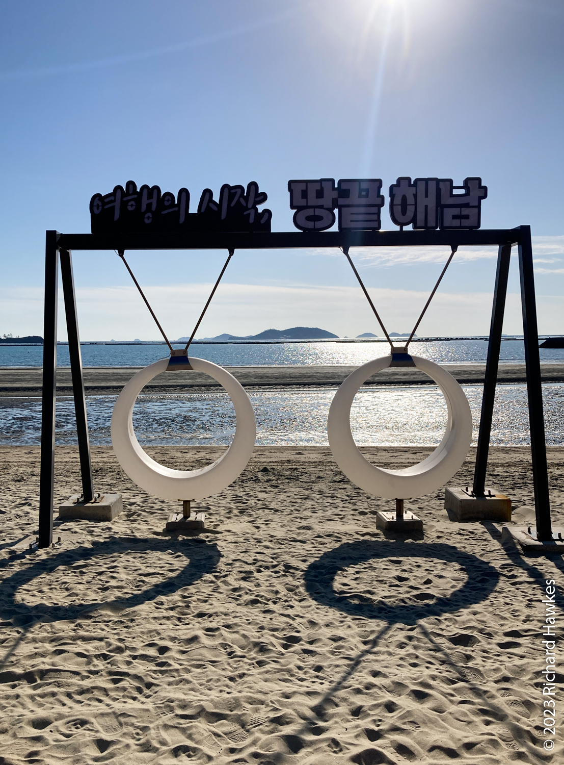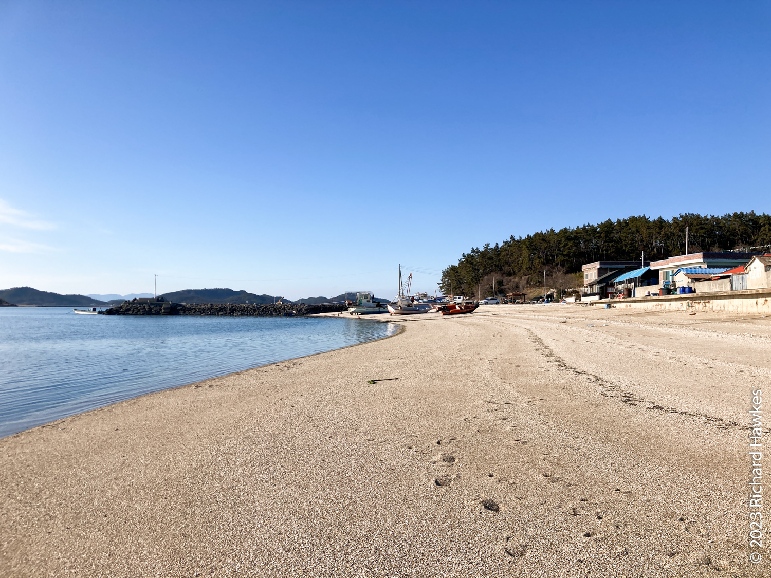 I stopped at a few beach areas on the way back to Mokpo. The first was Songho Beach (땅끝송호해수욕장). It was a long, beautiful beach with lots of accommodation nearby. Probably a popular Haenam resort area. A few minute’s drive north of that, there was a beach with fishing boats, and a small island out to sea called Jugdo (죽도). It was a very pleasant, peaceful view with only the sounds of water lapping at the shoreline. In low tide, I think you can walk out to the island.