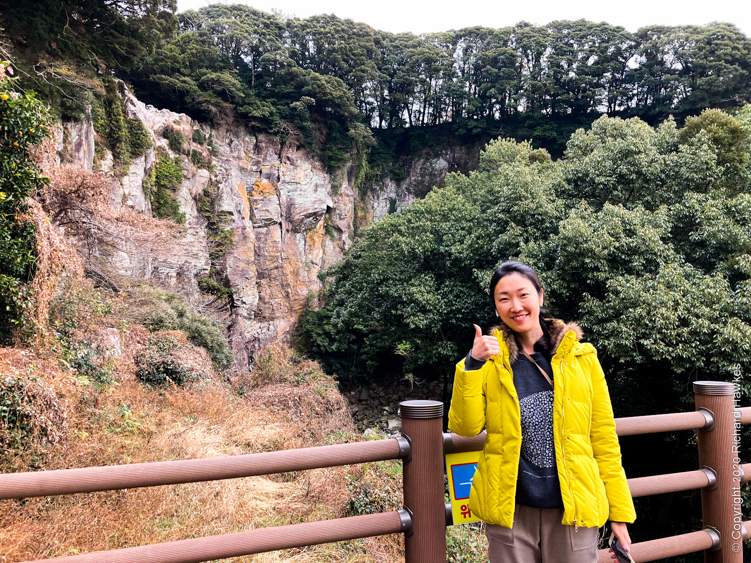 On our first part of the last day, we went to a dry waterfall (again for me, by accident!), then to another oreum (big hill), ate a long fish. In the second half, we went to two mandarin farm cafes. This was a winter trip in two parts; a solo three days, then four days with Romana.