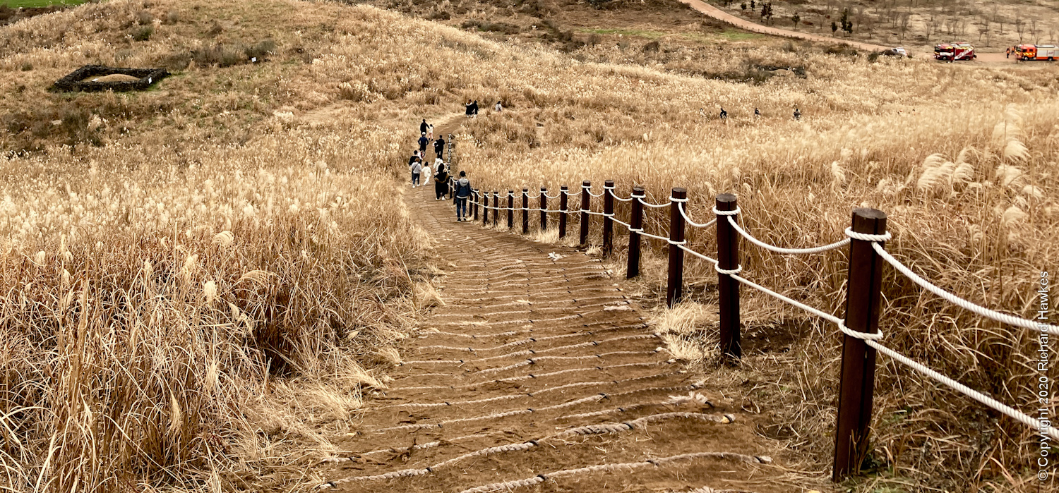The weather wasn’t awesome, sadly. We drove to huge grass covered oreum called Saebyeol (새별오름) and walked up. It was busy! I tend not to enjoy scenic trips when the weather is dreary, but looking back at the photos, I remember it was quite nice!