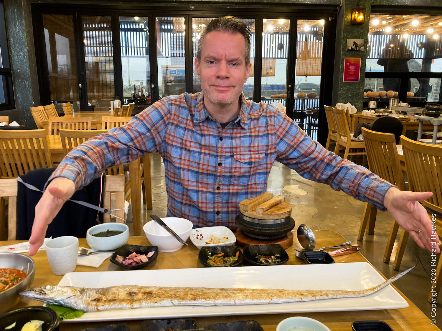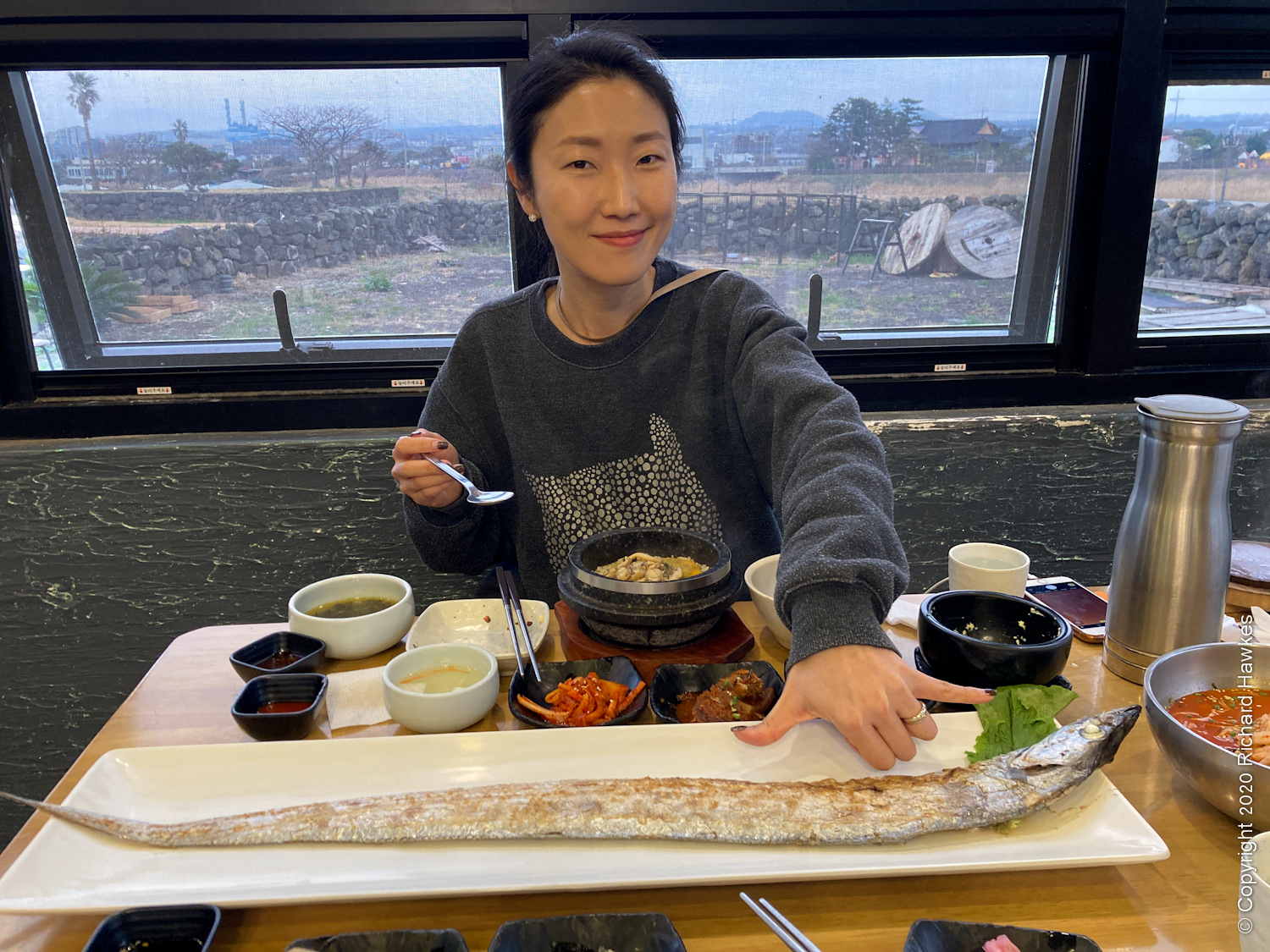 After this, Romana hunted out a lunch place. We drove to Eobaksa (어박사) for a really long fish, a galchi (갈치) which I believe is a cutlass fish and is usually served grilled in smaller sections of fish.