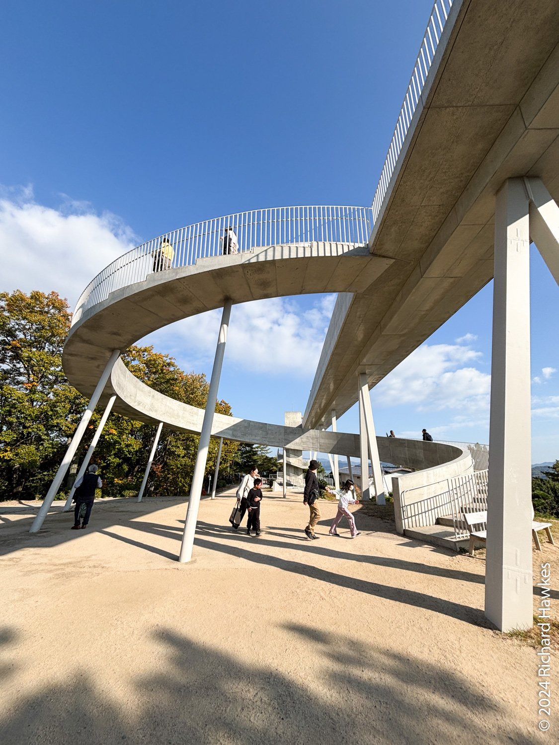 At the top is a huge concrete observation structure with long straight sloped viewing deck and a cool circular walkway to get up. The views from the top over to the islands were superb and added to my excitement for tomorrow’s ride.
