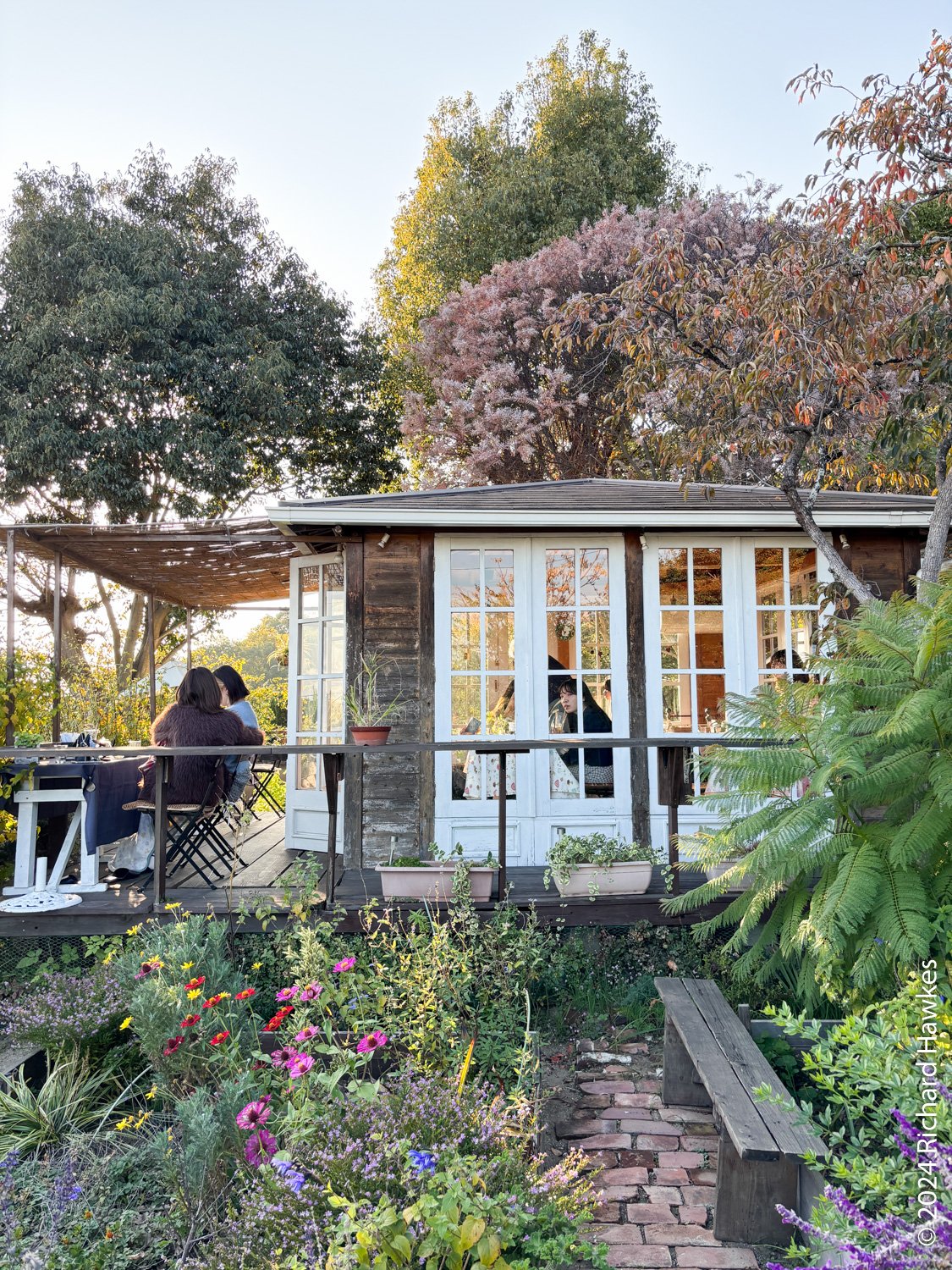 I searched on Google for any nearby cafes and found Le Jardin Charme, a cafe in an old building in a large garden and beautiful wood and glass outhouse with a terrace looking out to the coast. I had a cappuccino and bit of cake.