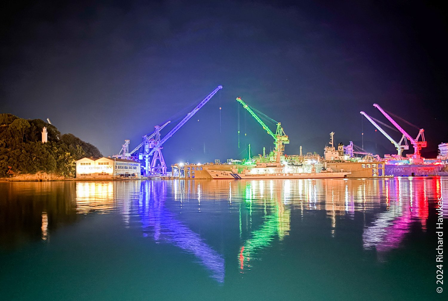 After a shower and quick rest, I headed back to town and found Laport, a pizza place. I got a pizza and a glass of red wine. The woman cooked it in a proper wood fired brick oven! Very tasty. While on the way and on the way back to the hotel, I looked in a few convenience stores looking for a power adaptor. They were pricy, but eventually I bit the bullet and got one. I got a beer and a pudding then headed to the sea wall to drink it. There was a very wild busker jumping around shouting his songs in the dark, but with no one watching! Also nearby was the ferry port where I’d be going tomorrow morning so I checked that out and noted the prices.