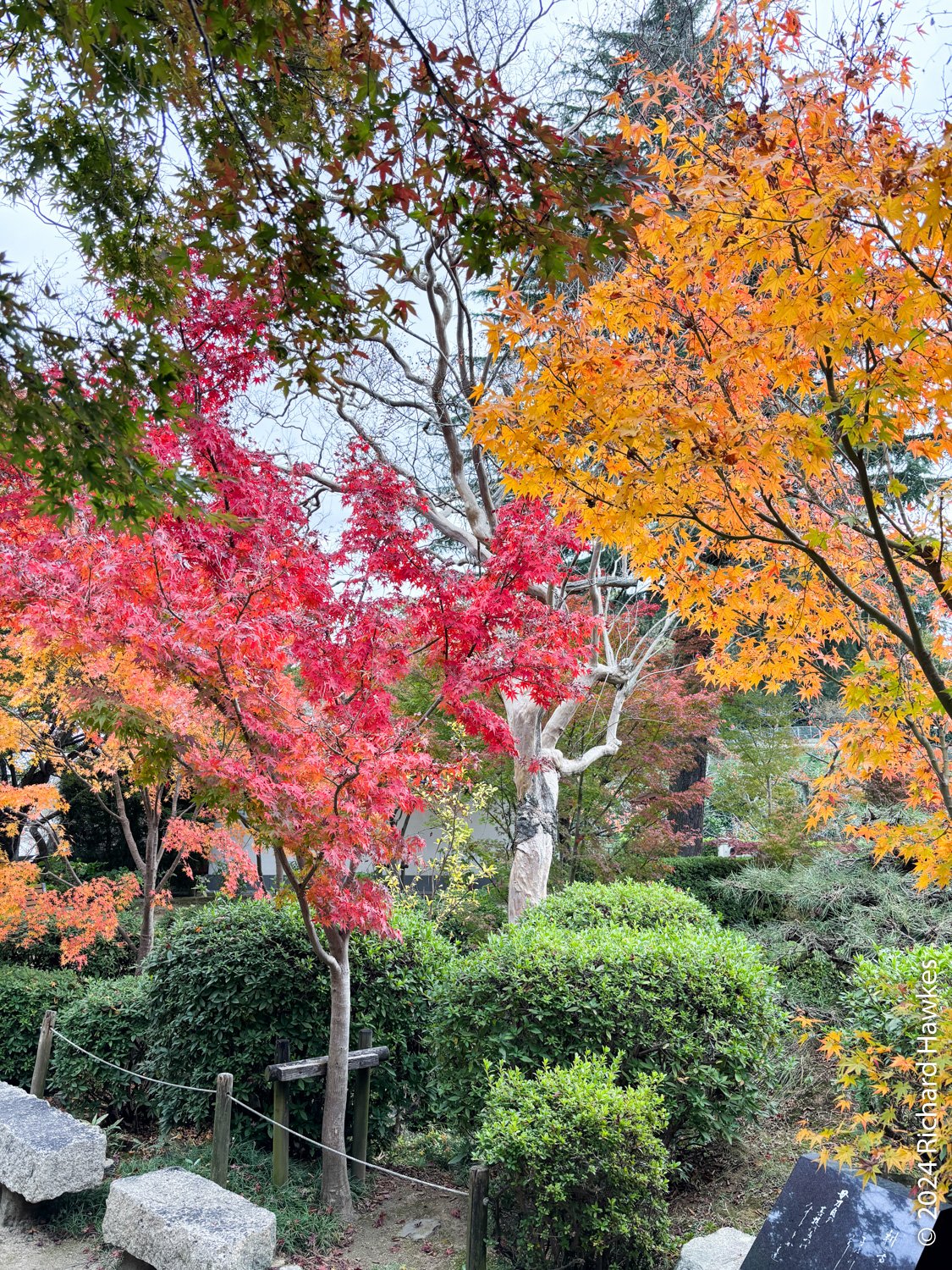 Up around 8 o’clock and had a coffee and apple pastries in the lounge. Cycled to the museum of art, but thought it seemed a bit pricy so went to a Kousanji Temple instead which turned out to be very good; interesting and beautiful.