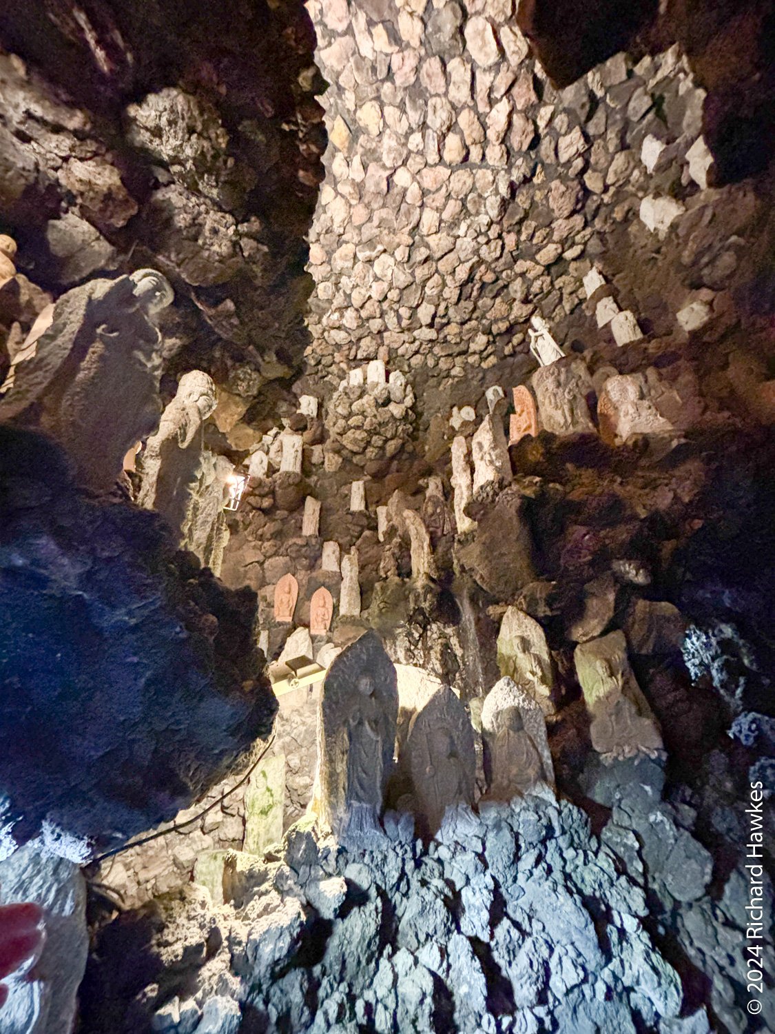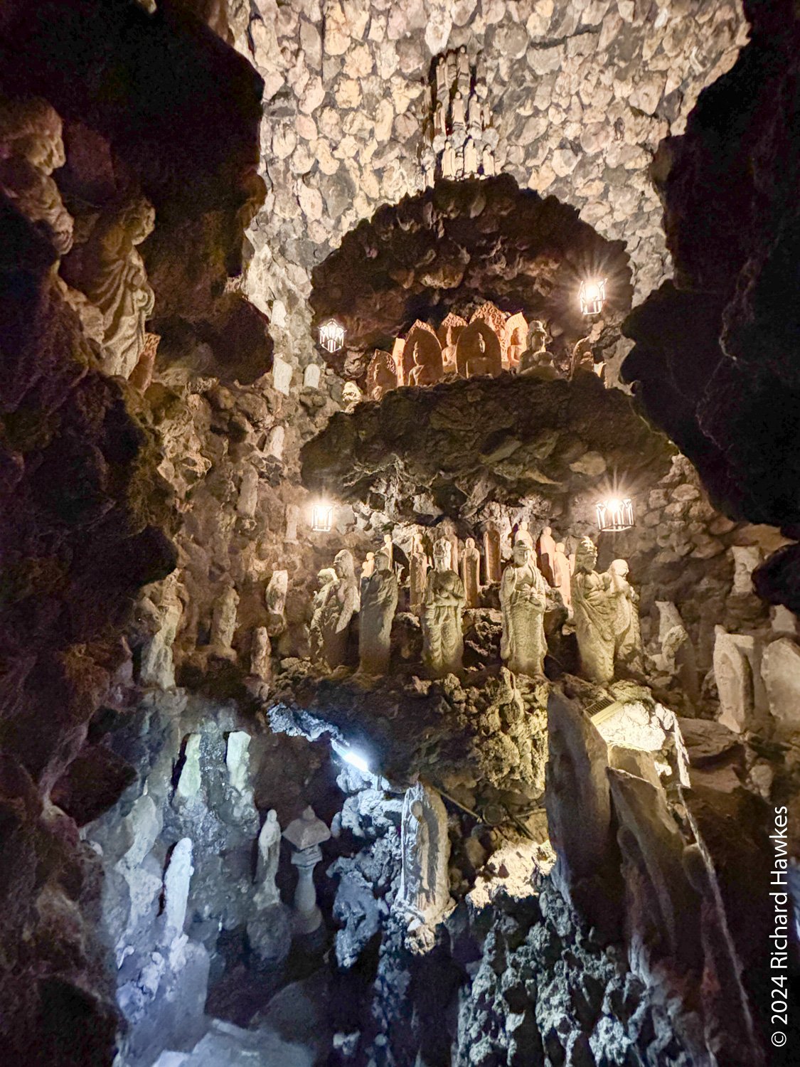 Today I spent the day on Ikuchi island cycling around the town of Setoda. I went to a great temple with a deep fascinating cave of buddhas. Then an interesting stone park on the hills behind it. Then had black tea, lemon grilled chicken, a cycle to a nearby island, another temple, pancakes, saw a gorgeous beach sunset before a soba dinner. This is part of my Shimanami Kaido bicycle trail trip. It’s a 70-80 km cycle path crossing six islands linking Onomichi in the north to Imabari in the south west. It’s very well known and is covered on a million blogs and YouTube channels! I stayed in Japan for five and a half days. Day one was exploring Onomichi, days two to four were on the trail, and the last day was spent in Matsuyama.