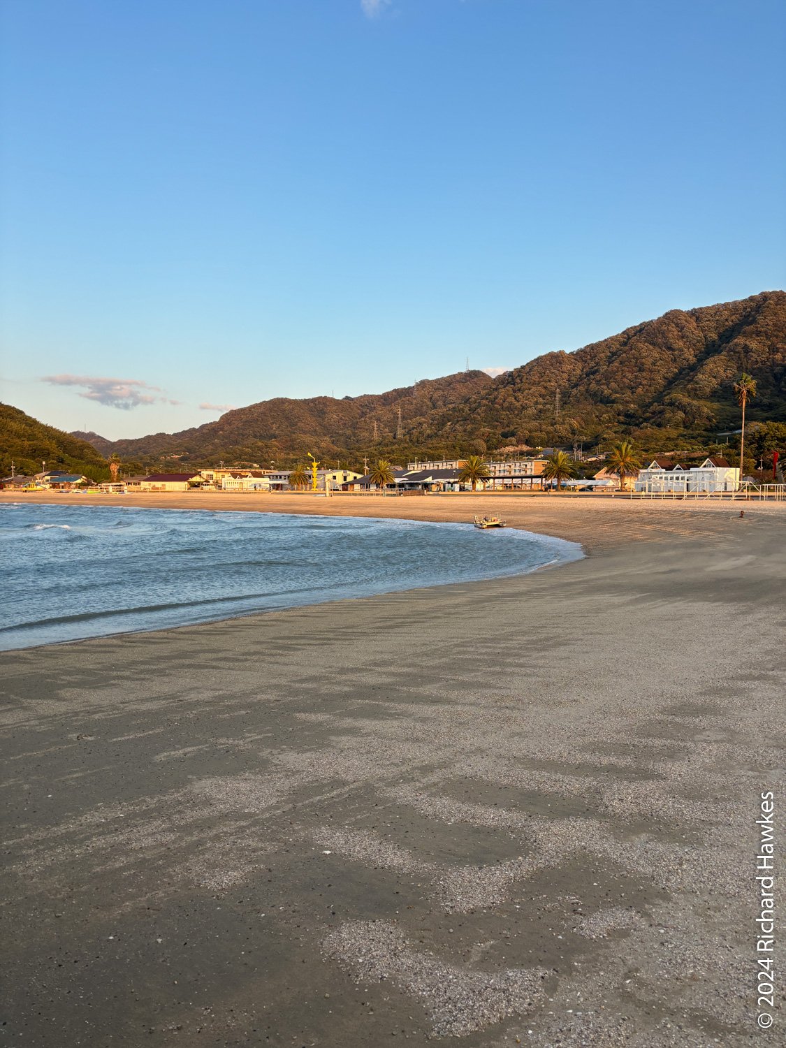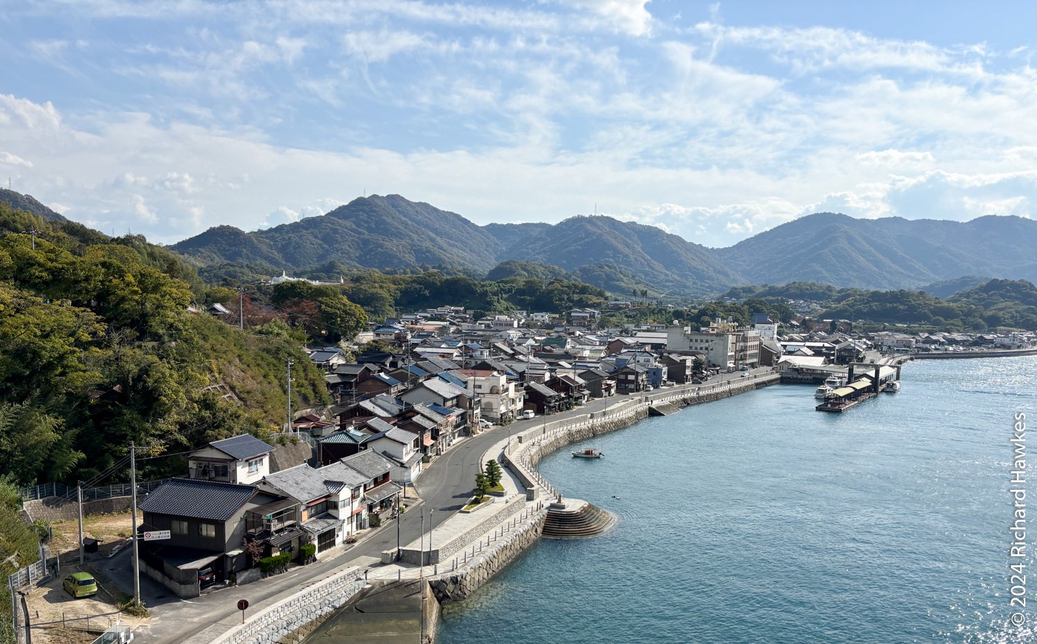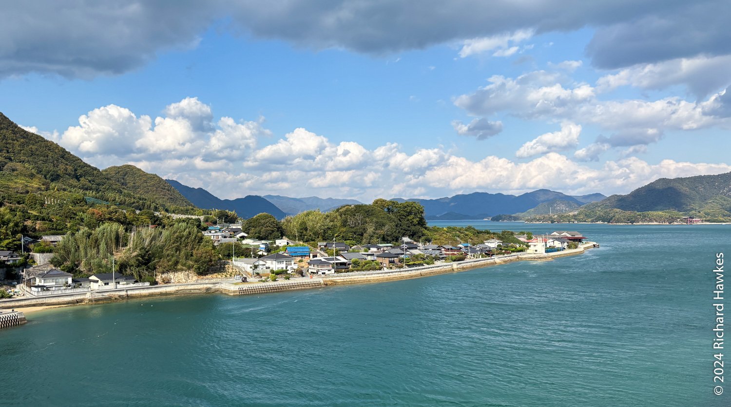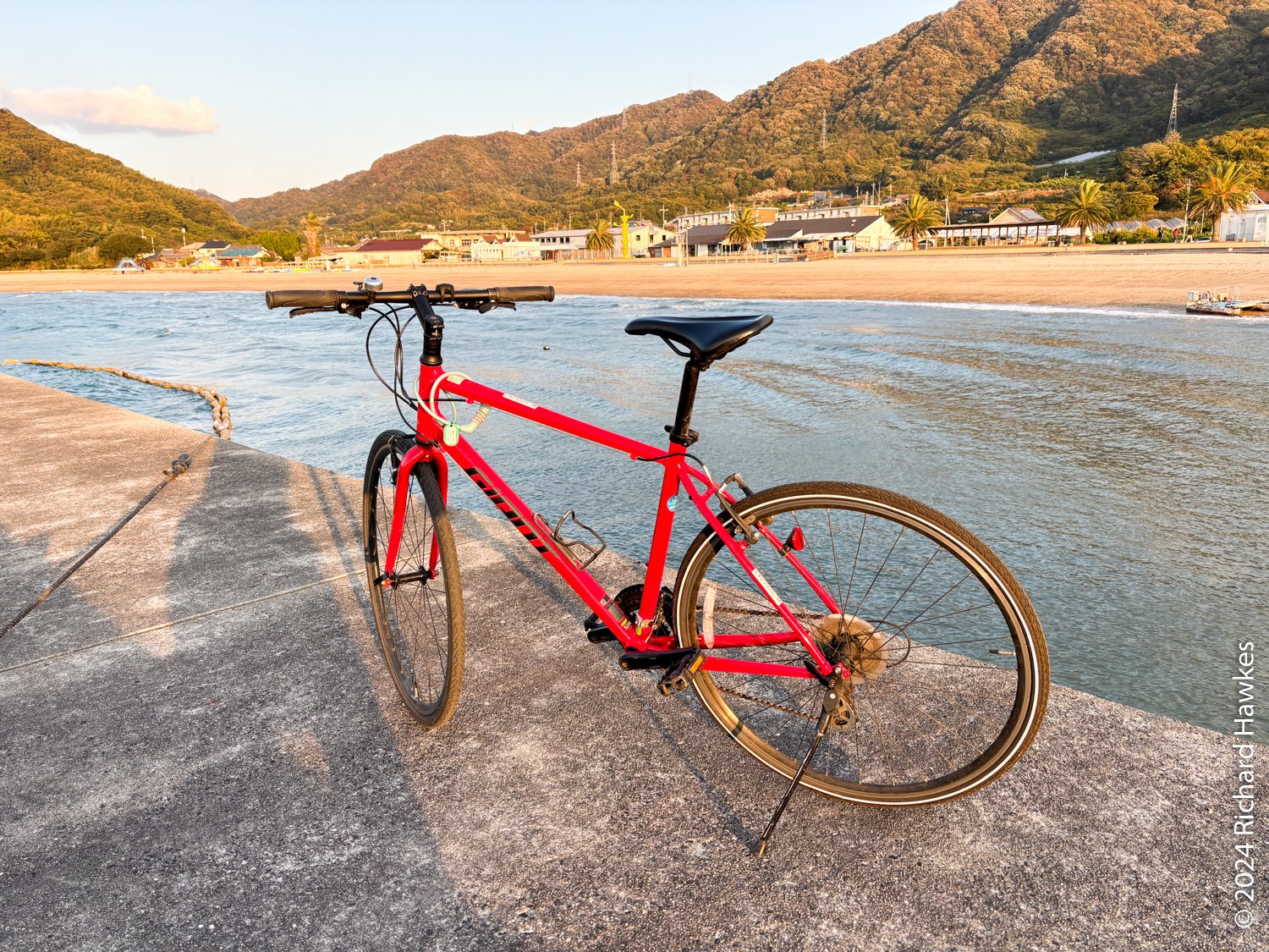 I wandered around the harbour a little then decided to cycle over the red bridge to Takaneshima Island. It was a very narrow bridge, no cycle lane. I didn’t go far, maybe a kilometre or two north, then back. It was pretty, like the whole set of islands.