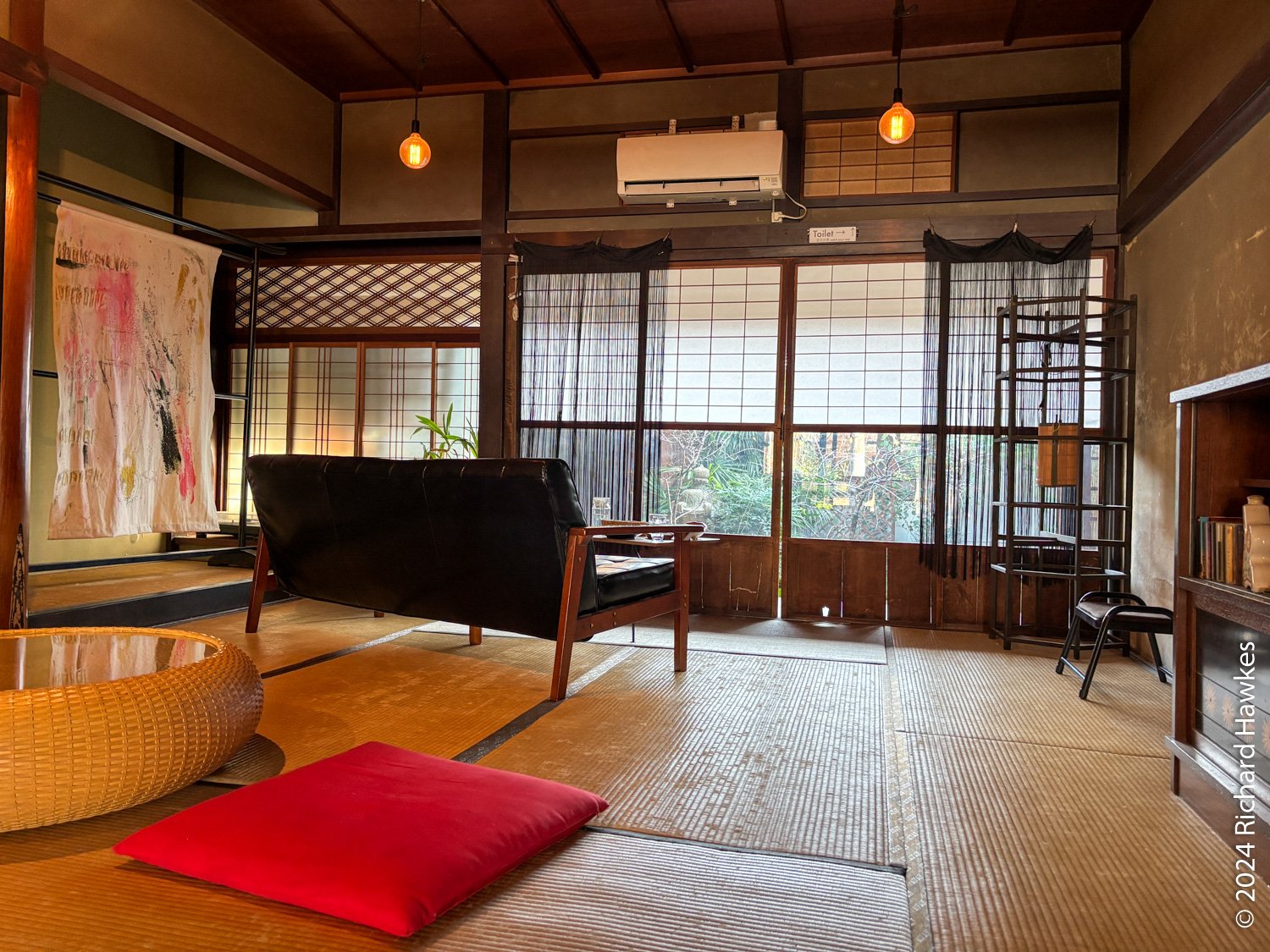 Back on Ikuchi, I cycled north east to Kojo Temple and walked up to the view point at the top of the hill. I noticed a plaque and it was a point where the famous local artist had sat and painted some landscapes. It was him that the are museum in town was dedicated to. Then I cycled back into town a got a lemon pancake and coffee at Shiomachi-tei Bicycle Cafe + Bar, a cool Japanese building with nice tatami seating area with a retro feel and a rundown garden out back. Then I took a quick tour of Hirayama Ikuo Museum of Art I’d passed earlier this morning. It was quite interesting though not sure if it was worth the entrance fee. I then wandered around a little more thinking about what to do next!