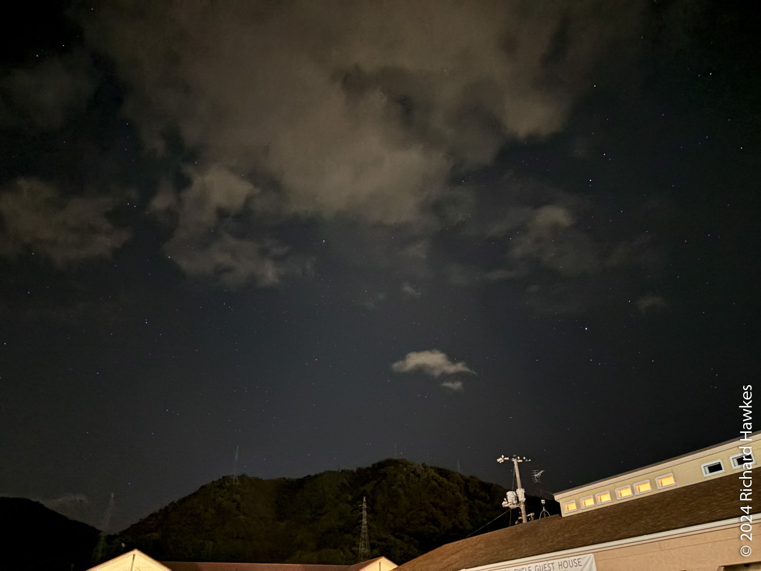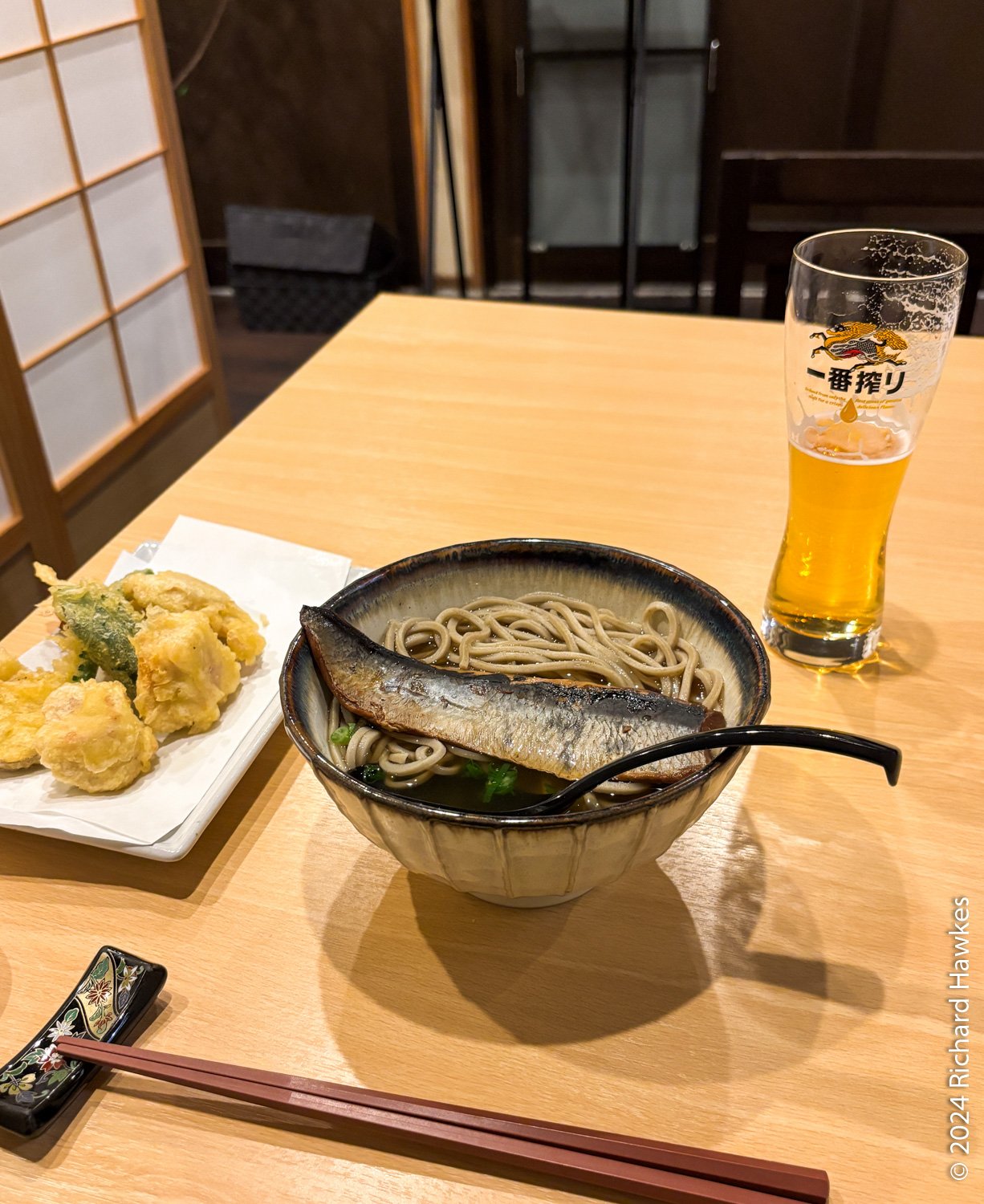 On my way back to the guesthouse I searched for a few dinner options. I waited a while at the guesthouse resting, then headed to Soba Fukurou for soba with a herring on top and a beer. Very nice! I fancied going to a bar after that but unfortunately there wasn’t much open. I returned to the place I’d had tea at earlier and it looked quite lively, but the place was full! Guests mostly I imagine. I then took some photos of the stars and bridge at the harbour, then some more photos outside the guesthouse as there wasn’t much light pollution and a good amount of visible stars. I grabbed a beer at a Lawson on the way back to drink in the guesthouse lounge, then called Romana before bed. A lovely, varied, relaxing day!
