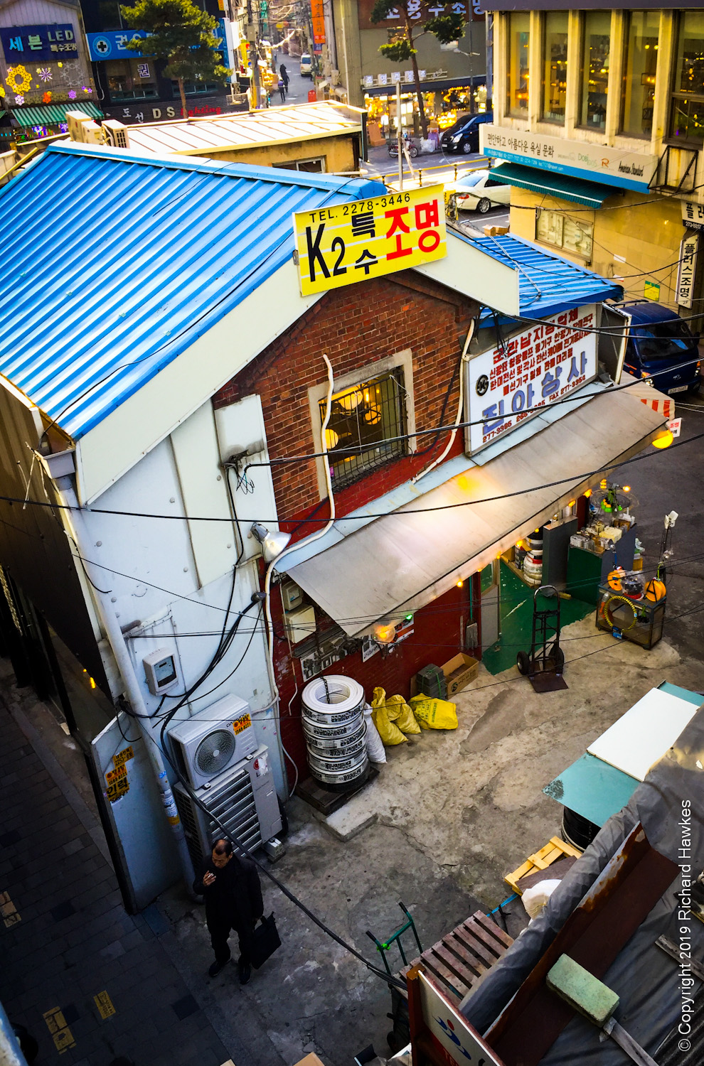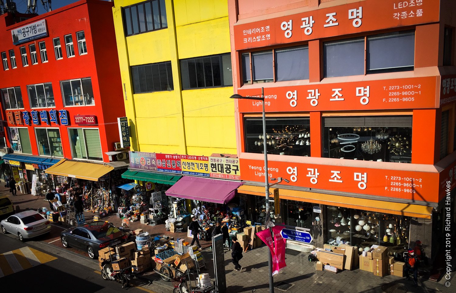 The streets at ground level either side are filled with large and small lighting shops and I suppose Sewoon Makercity caters to people who might frequent these stores. There is a lot of redevelopment going on, and the whole area has a somewhat industrial vibe.