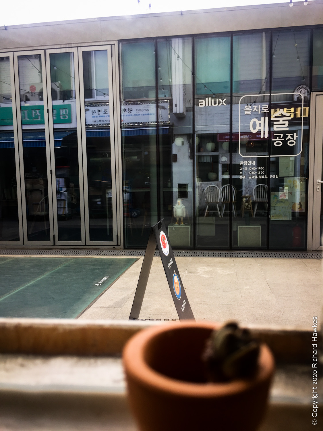 On the east side of the building, there are newer stores, design companies, coffee shops and restaurants, with quite a few younger people milling around which I assume are designers, university students and people like me just looking around! I dropped in to a coffee shop/bar call Vintage Lion (빈티지라이언) for a coffee and to warm up a bit. They had basic food on the menu too.