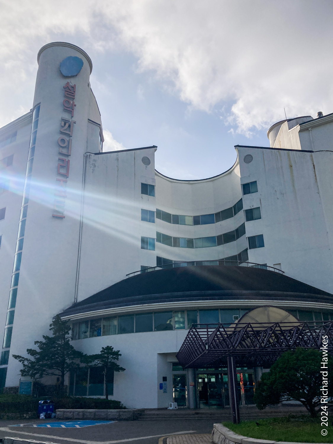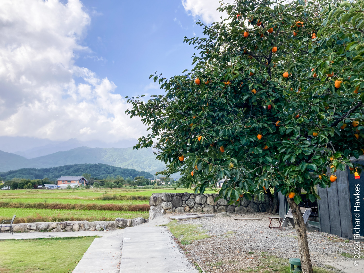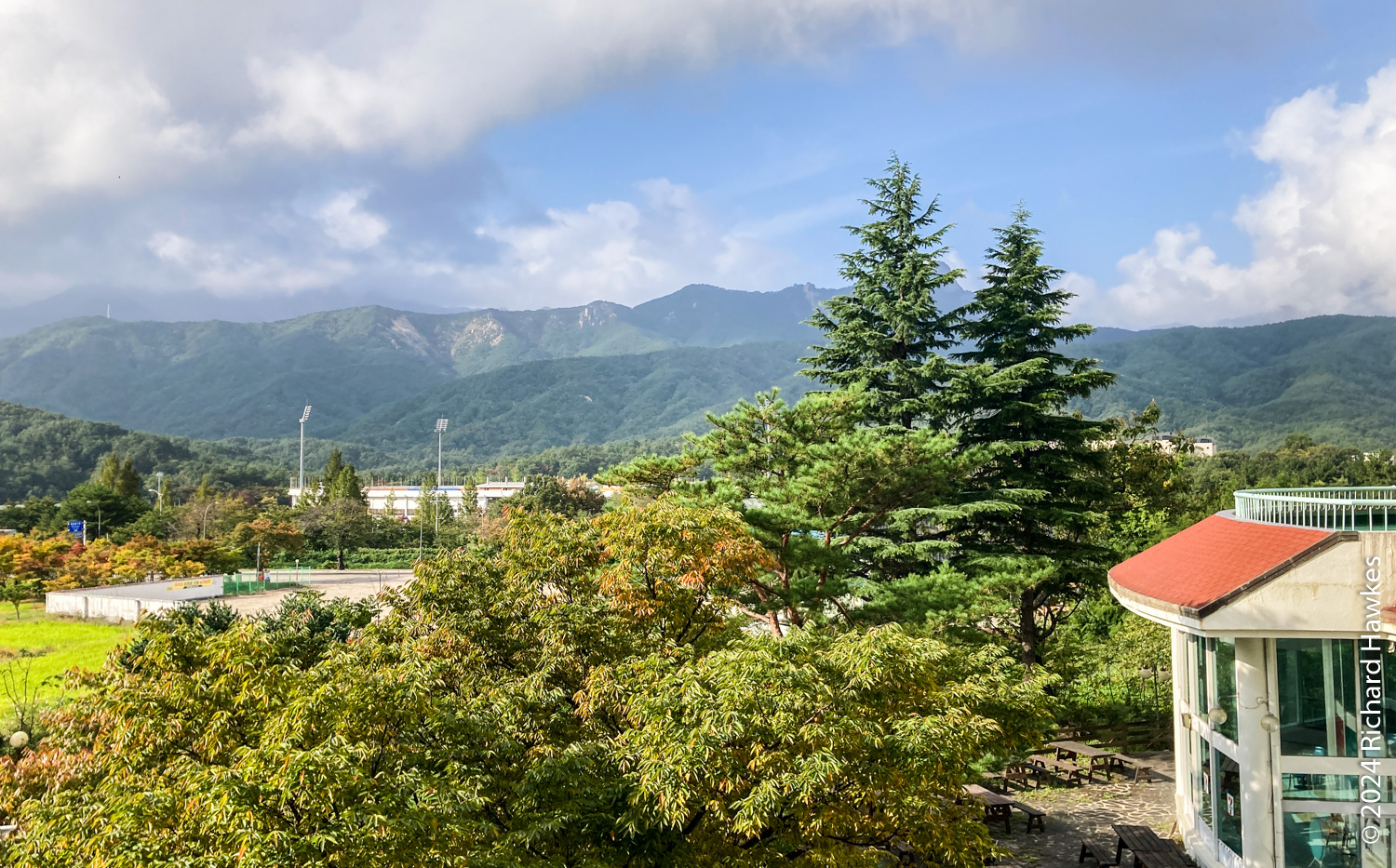 The Stay Orosy cafe (스테이 오롯이) used to be some accommodation (my guess) and now it’s a multi-room cafe with a nice bit of garden looking over rice fields and the mountains of Seoraksan. There’s also a little courtyard with a pool or pond in the middle. It was next to the Pine Resort I’d just checked out, so not far from the spa. It was peaceful too, only a few people there. I sat in the garden area for a while enjoying the view.